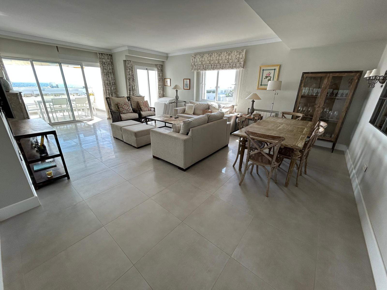 RENTAL FOR AUGUST ONLY!! Located on the beachfront within an exclusive gated community in Guadalmina Baja, one of Marbella's most iconic areas. This spacious apartment features three bedrooms and three bathrooms, a fully equipped kitchen, and a perfect south orientation offering beautiful sea views of the Marbella coastline from its private terrace. Additionally, includes a charming independent guest or staff apartment with its own private street-level entrance. This annex offers one bedroom, one bathroom, and a living room with a fully equipped kitchen. Private underground parking included on the price. The gated community provides a physical concierge, two swimming pools for adults and children, and also features the convenience of a private restaurant for residents and their guests during the summer season. Naturally, there is direct access to the beach and sun loungers. With a privileged location, 24-hour security, and proximity to Puerto Banús and Marbella’s charming old town, Guadalmina offers every amenity you could imagine: an attractive and dynamic shopping center, one of the oldest and most prestigious golf courses in Marbella, a fantastic beach club, and just steps away, the magnificent Senda Litoral promenade which connects Marbella to Estepona, with excellent and lively beach bars of all kinds. In addition, the famous Guadalmina Hotel offers a select variety of restaurants, services, spa, and beach club. Call us to arrange a viewing as soon as possible.