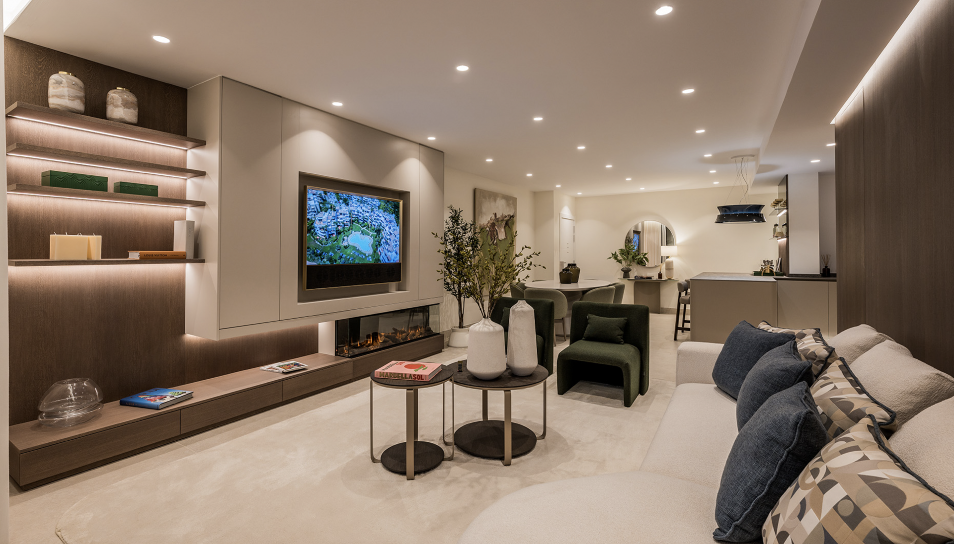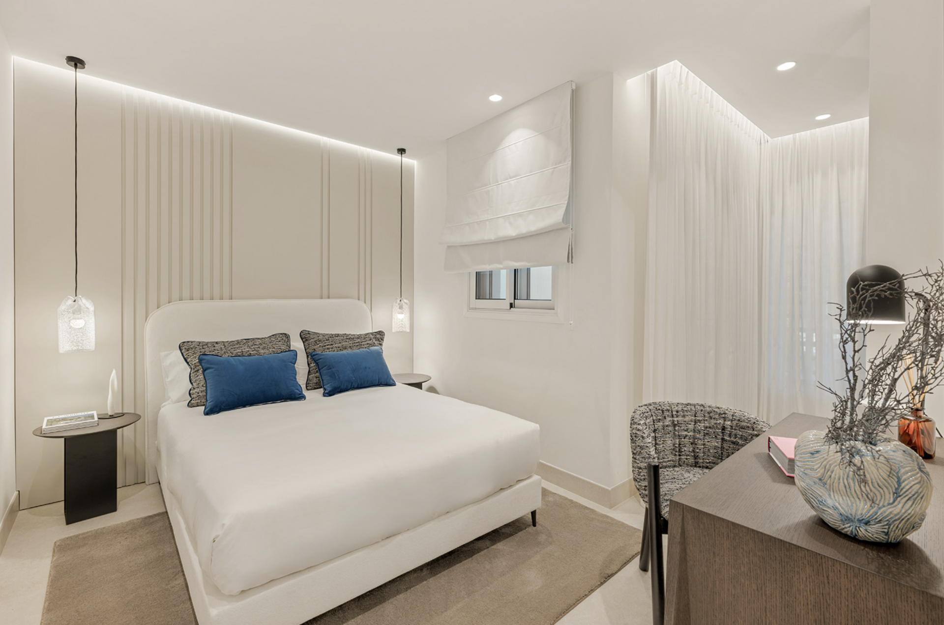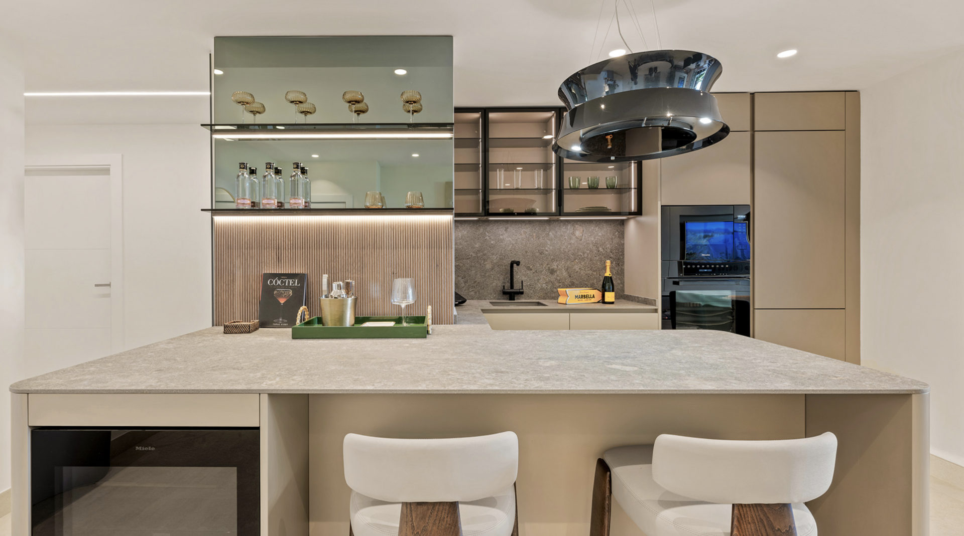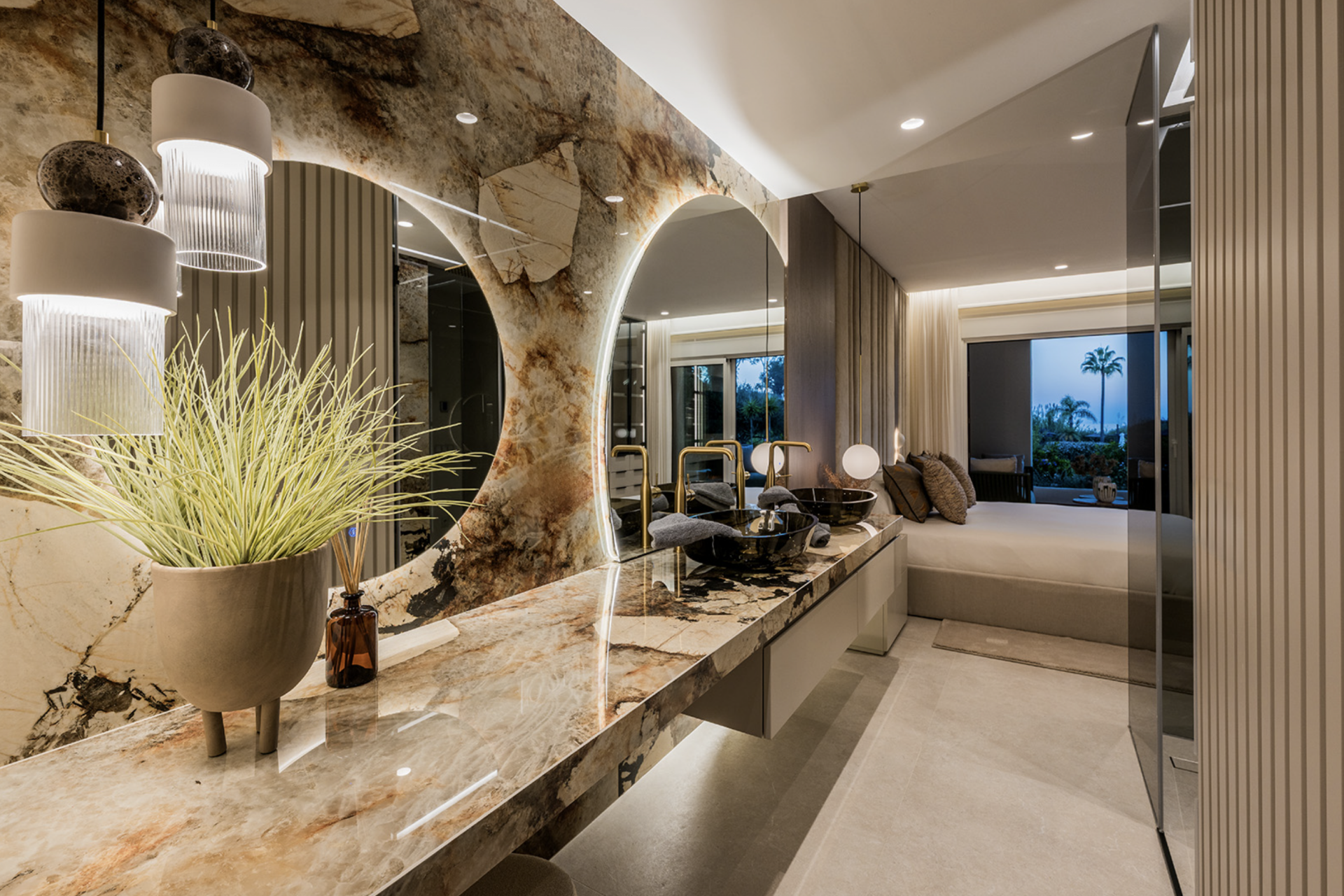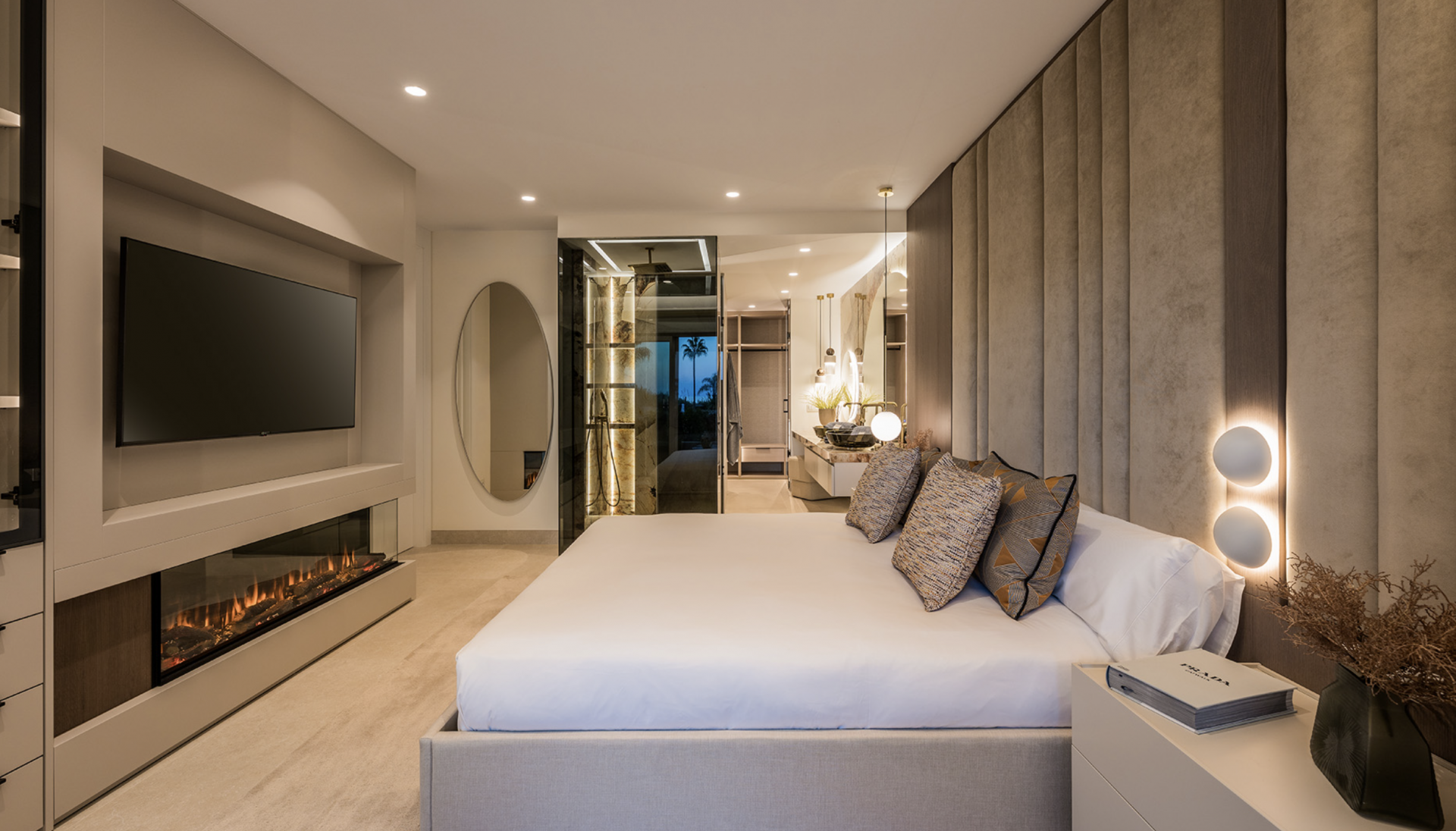Exclusive community situated between Marbella and Estepona. It features a stunning pool area with a snack bar, lush tropical gardens, and round-the-clock security. This prime location offers access to one of the best beaches in the region.This stunning apartment features an open-plan living space with contemporary furnishings and high-end finishes, including custom wardrobes, elegant flooring, an electric fireplace, and a Bang & Olufsen sound system. The designer kitchen is fully equipped, and the open living area leads to a private terrace with sea views. Fully furnished and ready to move in. Includes an underground parking space and a convenient storage room in the basement. Offers the perfect blend of luxury and tranquility. The apartment has direct access to a private terrace and lush tropical gardens. The peaceful atmosphere of the community enhances the feeling of serenity, while the modern design of the apartment ensures comfort and style.