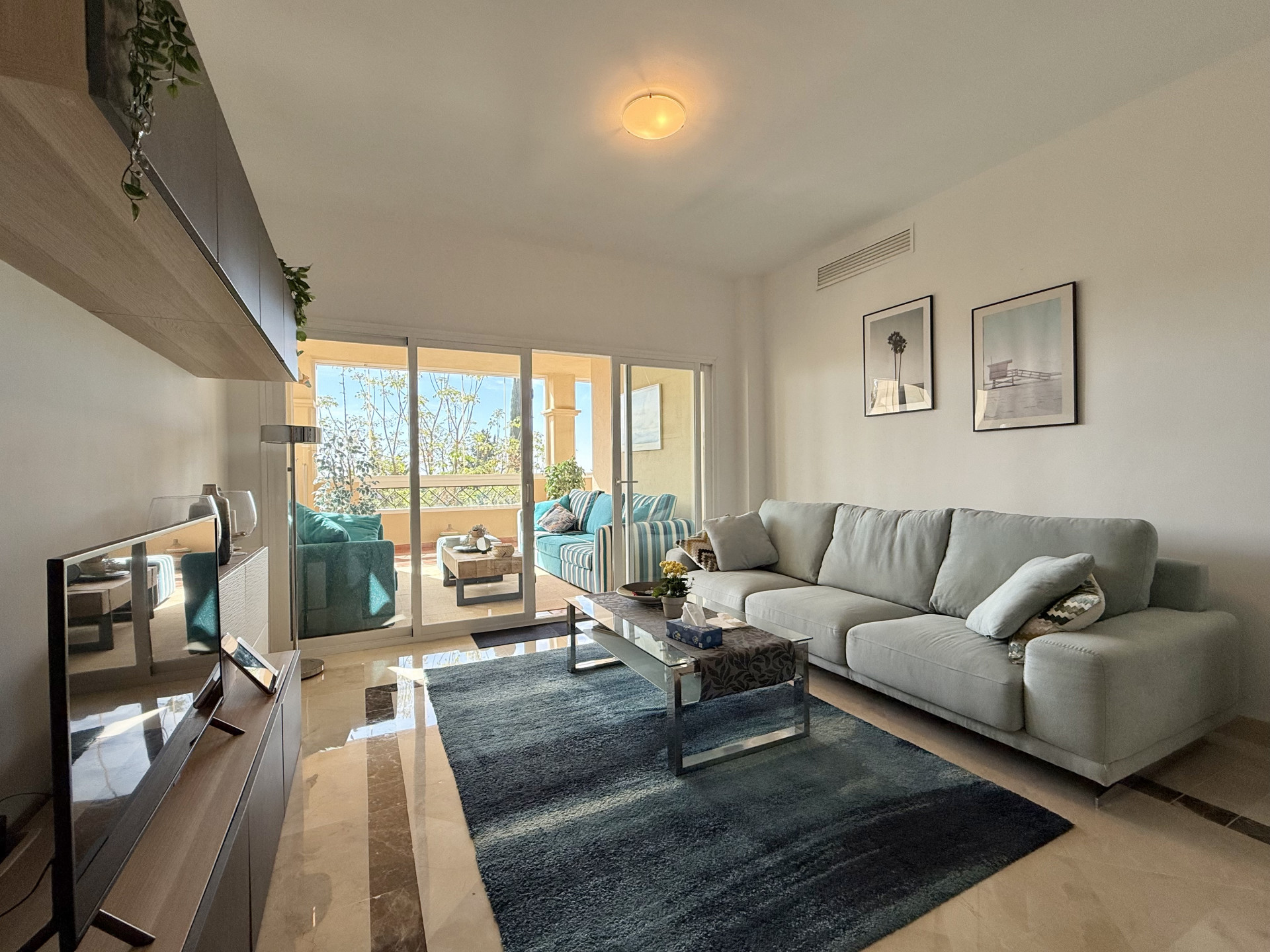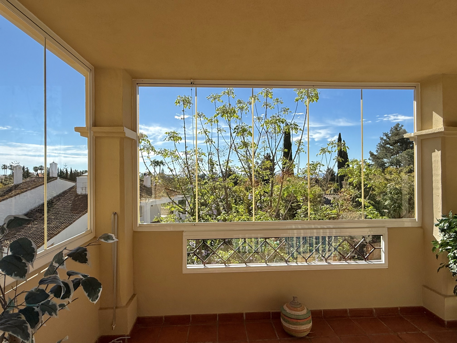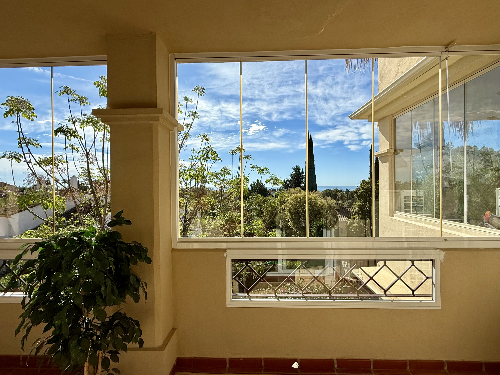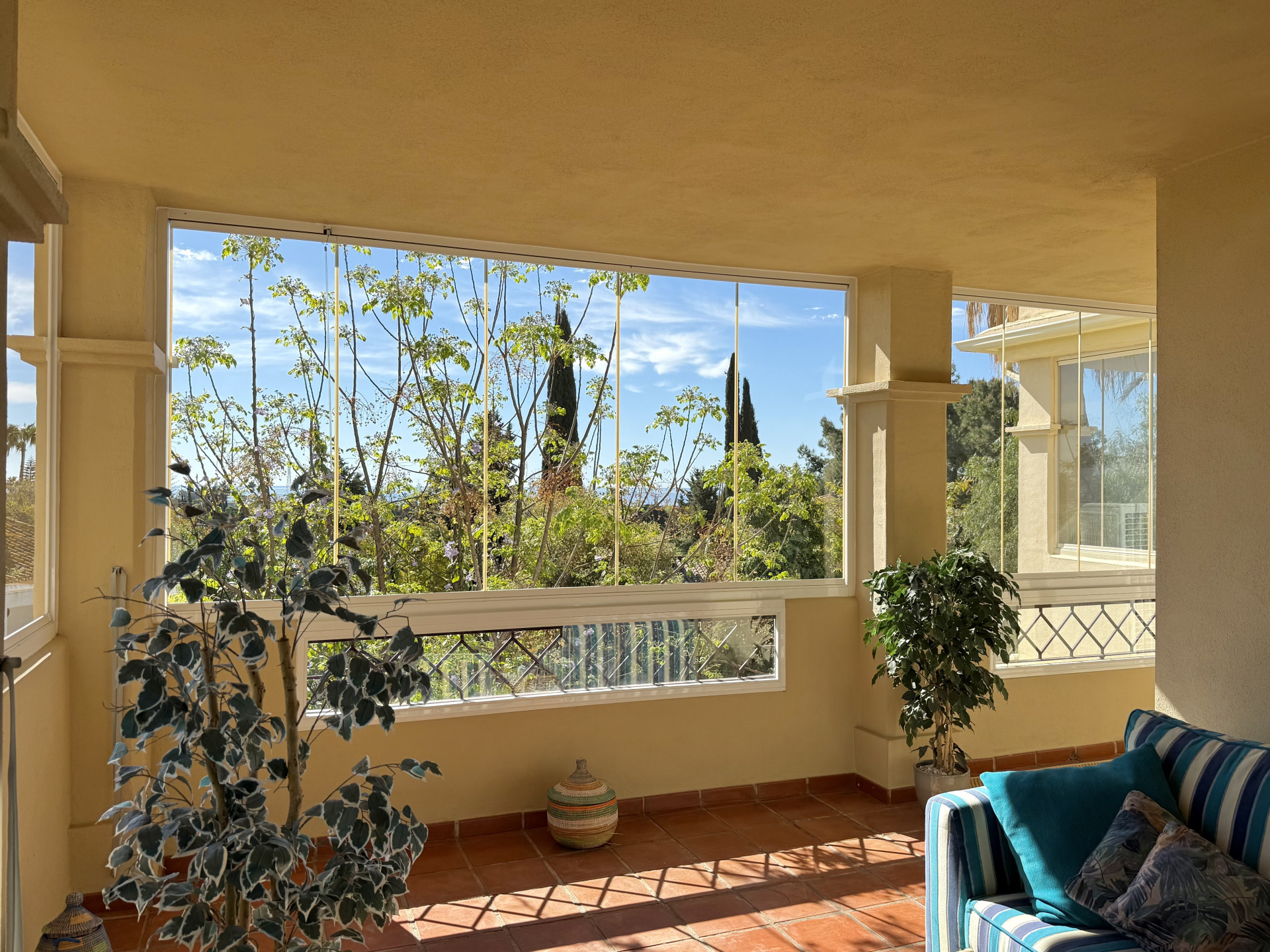 A particular highlight is the covered terrace complete with glass curtains, creating a versatile space for year-round enjoyment and providing breathtaking sea and mountain views. The residence’s privileged orientation also grants picturesque views of the communal pool and well-maintained gardens. The location is ideal for those who value proximity to leisure and essential amenities. Situated close to prestigious golf courses, reputable schools, and acclaimed restaurants, the property ensures easy access to the best of Benahavis. In good overall condition, this apartment offers an exceptional lifestyle within a peaceful community, making it an outstanding choice for a family home, holiday retreat, or investment in the Costa del Sol.