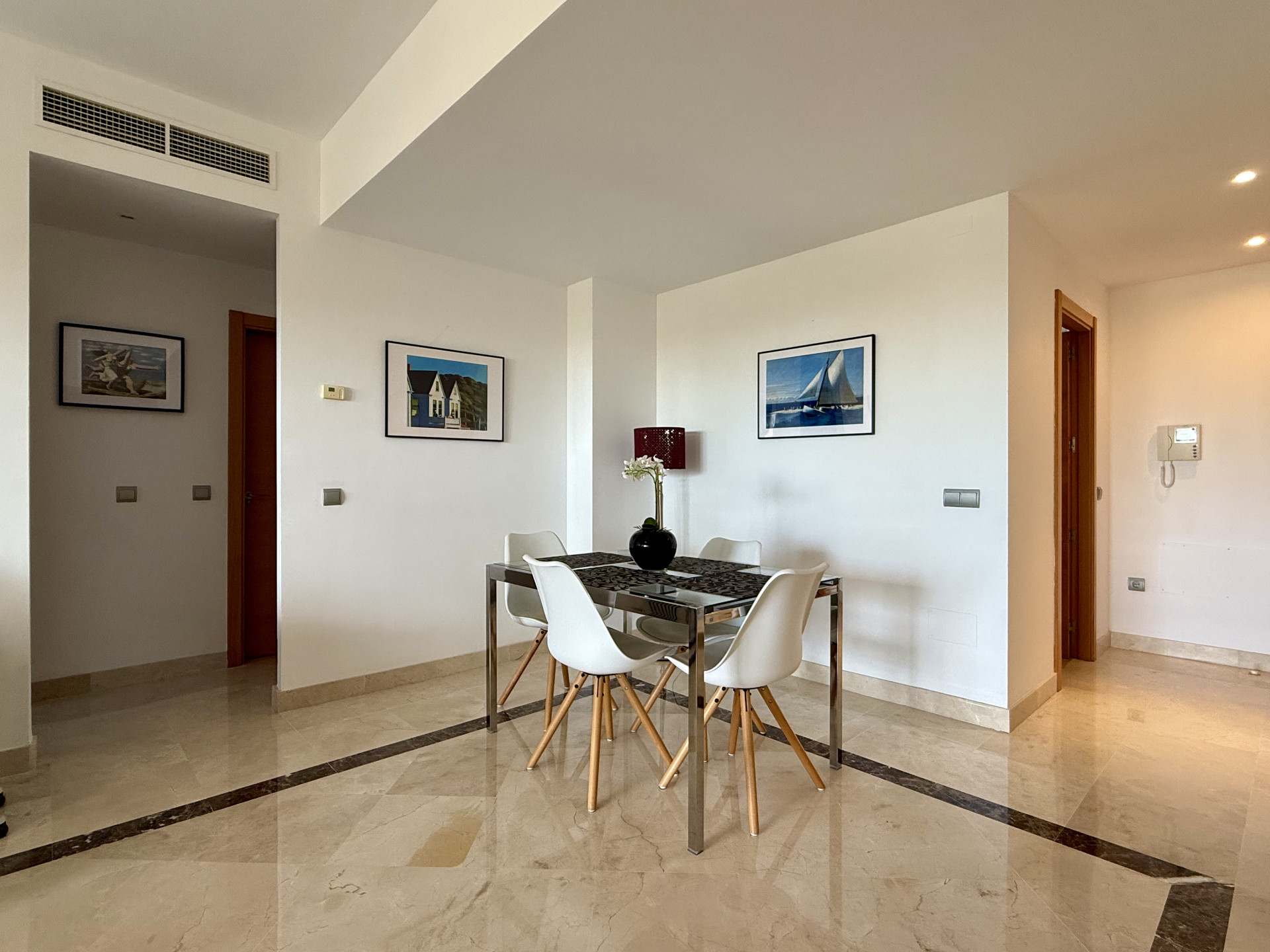This elegant apartment is situated in the renowned Toscana Hills. Comprising three bedrooms and three bathrooms, the property extends over a built area of 124m², with an interior space of 106m² complemented by an 18m² private terrace. Set within a secure, gated community, the apartment promises a harmonious blend of tranquillity, comfort, and convenience. The apartment is sold fully furnished, featuring a spacious living room and a dedicated dining area, both finished to a high standard. The fully fitted kitchen is equipped with modern appliances and is accompanied by a separate utility room, catering to practical day-to-day needs. Highly desirable features such as centralized air conditioning, electric blinds, and a private underground garage.