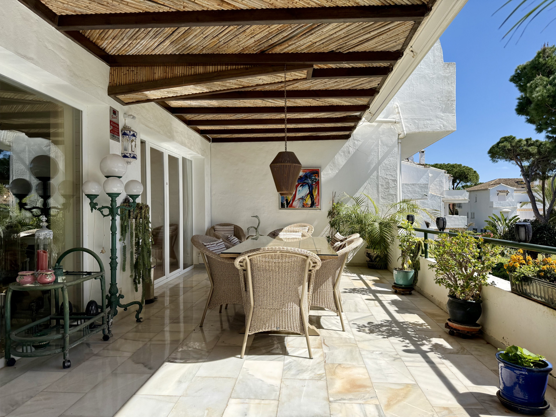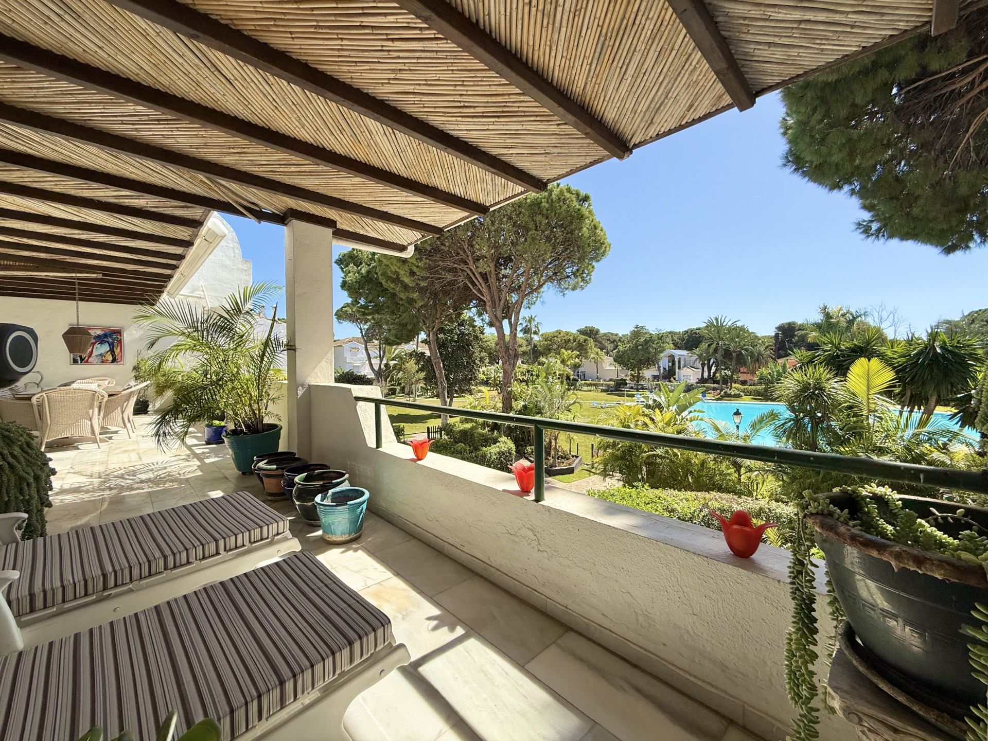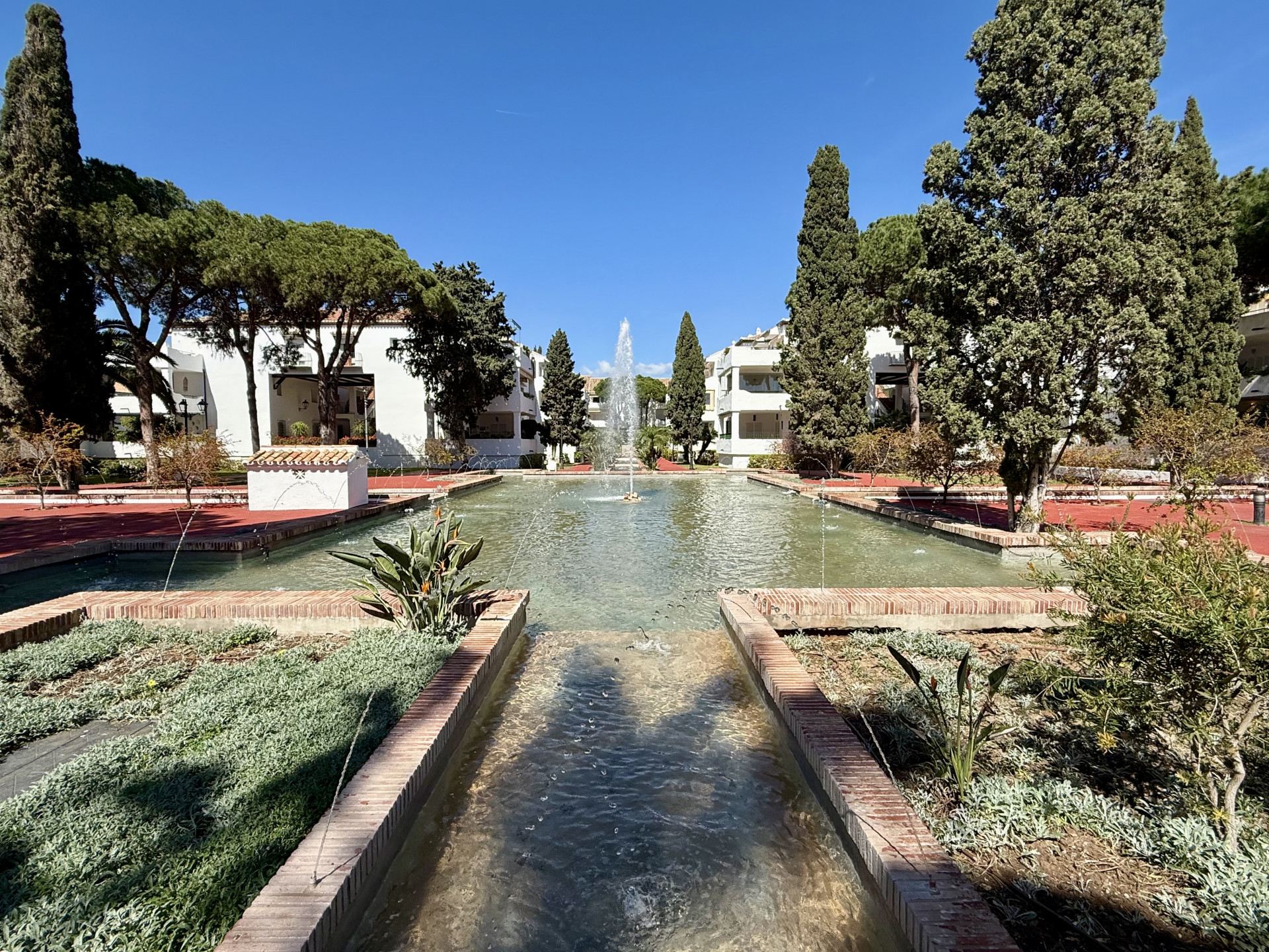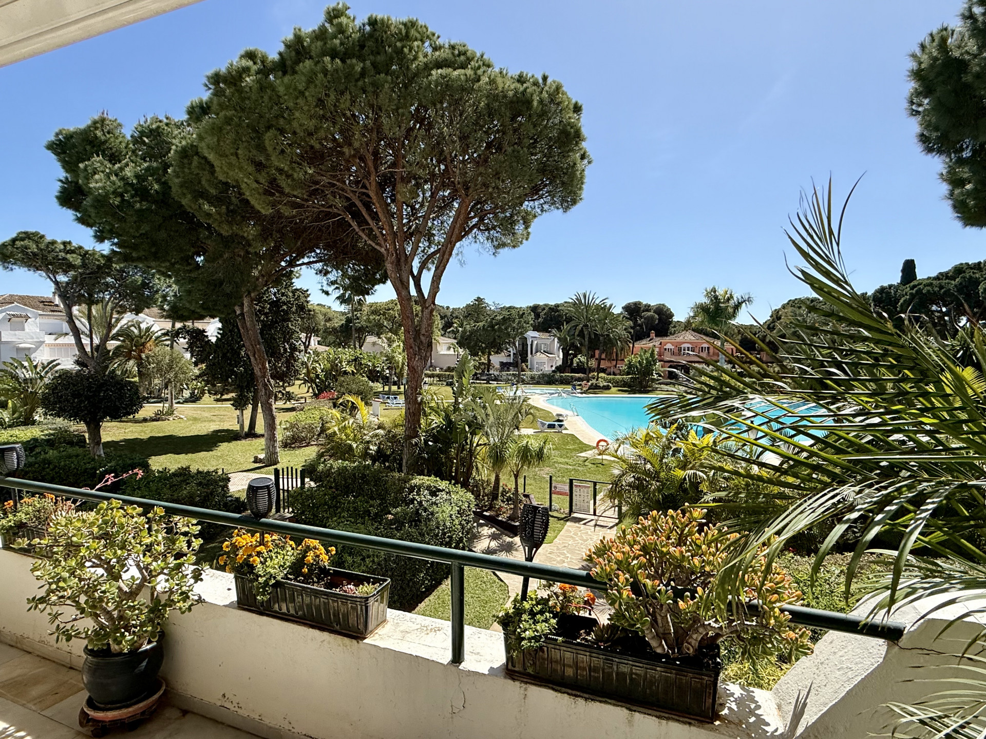 Located in the prestigious El Presidente development, one of the most established and well-maintained beachfront communities on the Costa del Sol. The property is presented in excellent condition and features 3 spacious bedrooms, 3 bathrooms, and a guest toilet, as well as a generous living and dining area with marble floors, a fireplace, and large windows that open directly onto the covered terrace—a perfect space to relax or entertain guests while enjoying the tranquility of the surroundings and views of the lush gardens and pool. The modern, fully equipped kitchen includes granite countertops and sleek high-gloss cabinets, combining elegance and functionality. El Presidente offers beautiful landscaped gardens, five swimming pools (one of them heated), tennis and paddle courts, and 24-hour security, all within walking distance of the beach, restaurants, and beach clubs. Ideally situated between San Pedro de Alcántara and Estepona, and just minutes from Puerto Banús, this property combines tranquility with easy access to the best golf courses, restaurants, and shops on the Costa del Sol. A unique opportunity to acquire one of the finest apartments in El Presidente.