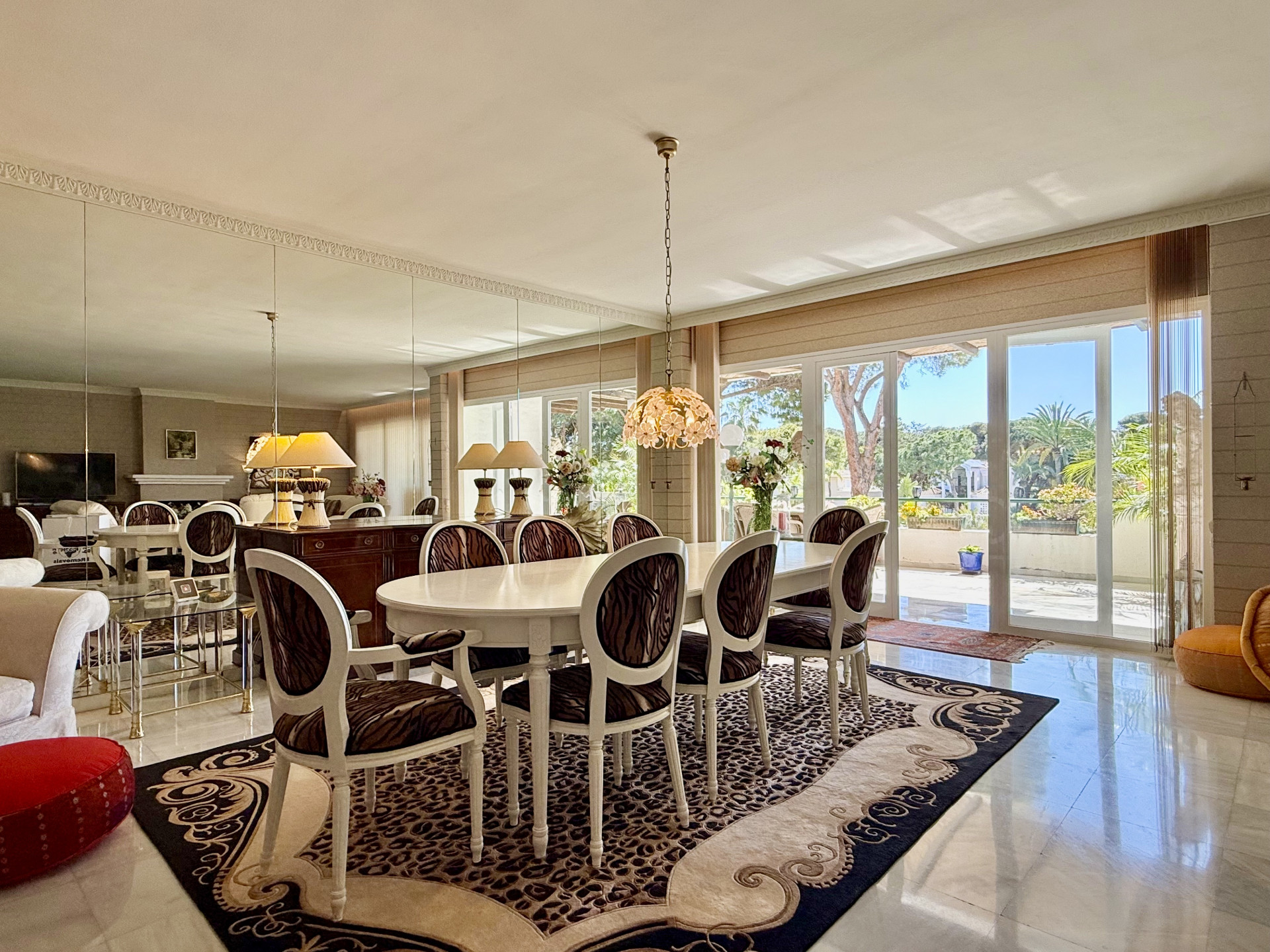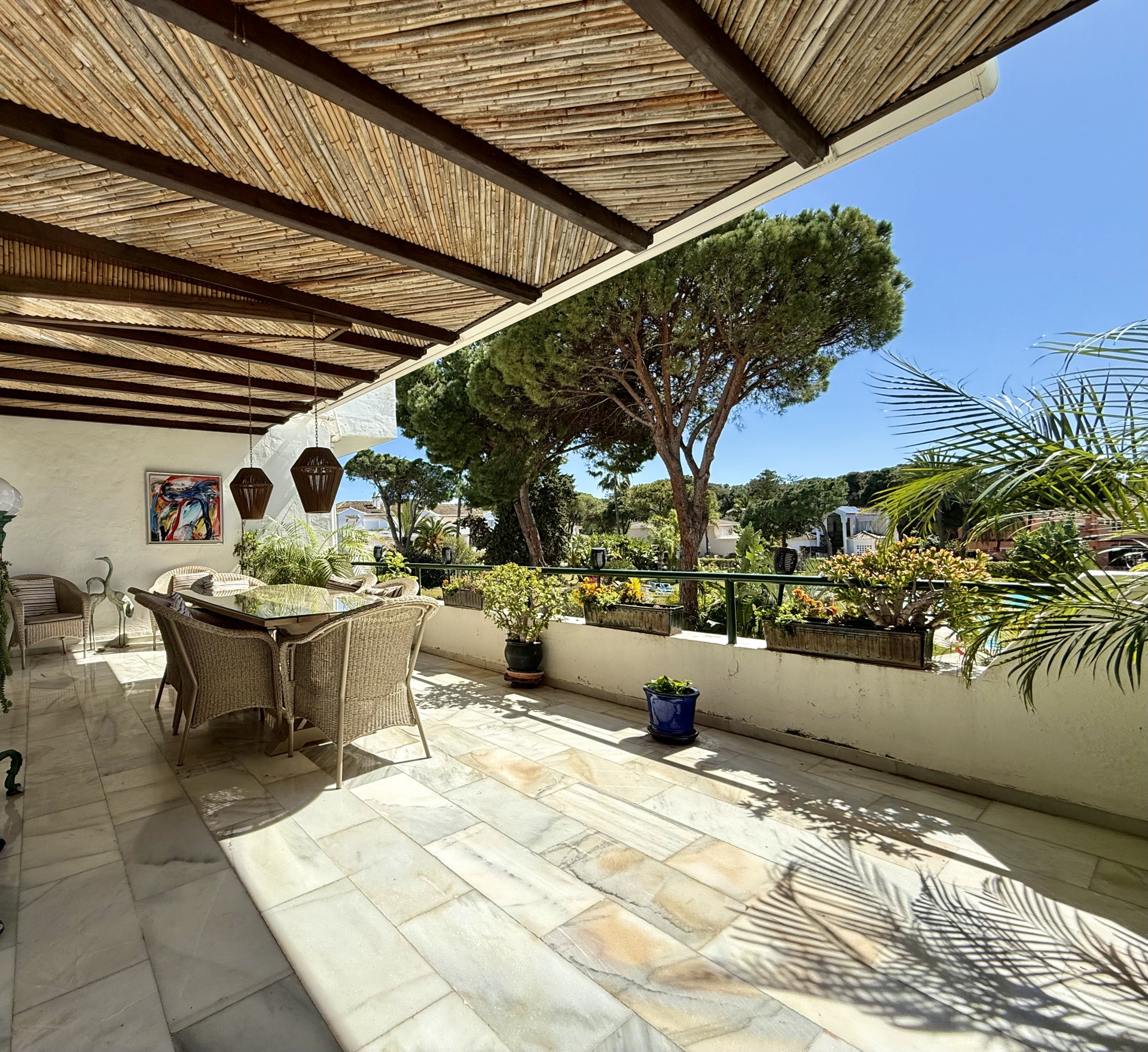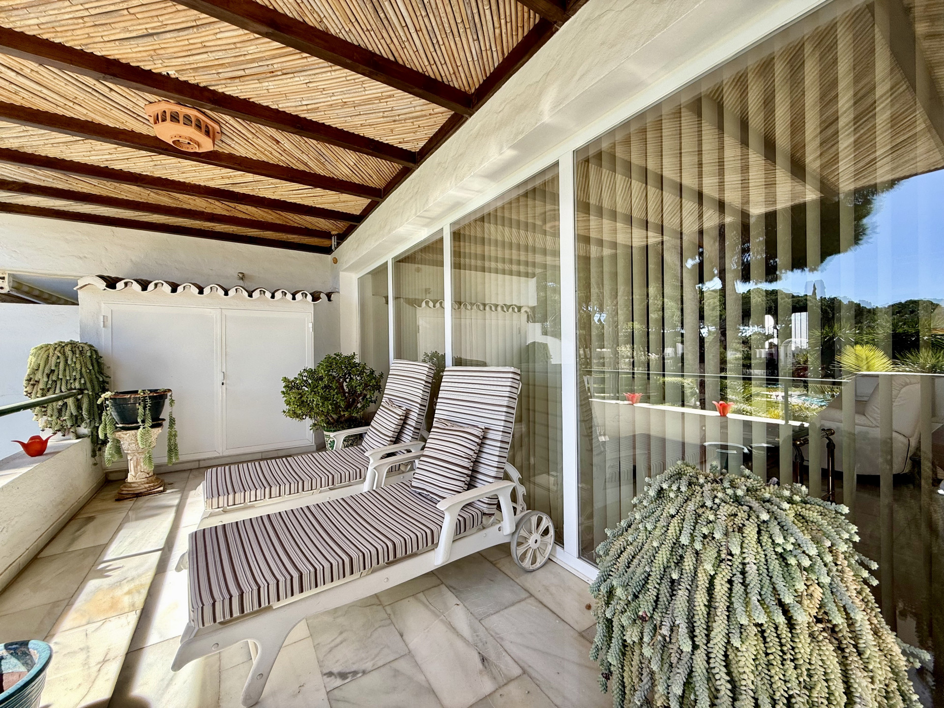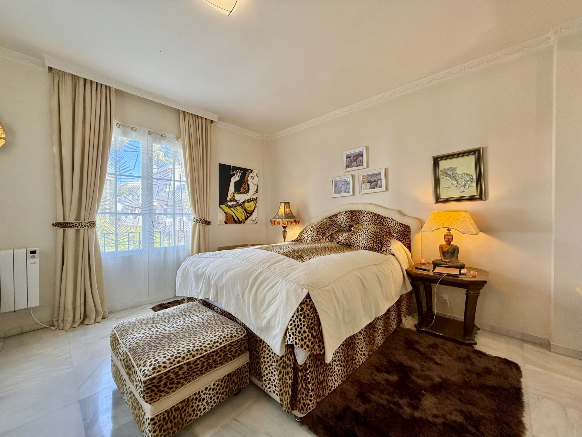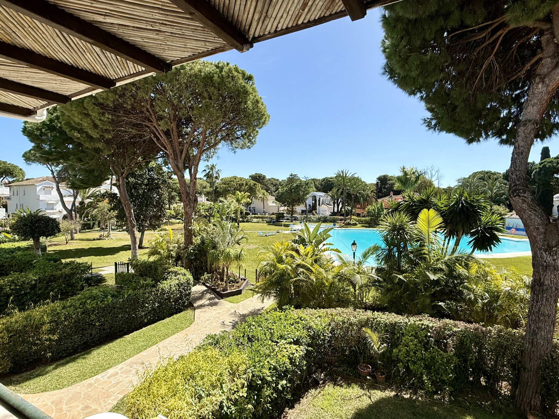 Located in the prestigious El Presidente development, one of the most established and well-maintained beachfront communities on the Costa del Sol. The property is presented in excellent condition and features 3 spacious bedrooms, 3 bathrooms, and a guest toilet, as well as a generous living and dining area with marble floors, a fireplace, and large windows that open directly onto the covered terrace—a perfect space to relax or entertain guests while enjoying the tranquility of the surroundings and views of the lush gardens and pool. The modern, fully equipped kitchen includes granite countertops and sleek high-gloss cabinets, combining elegance and functionality. El Presidente offers beautiful landscaped gardens, five swimming pools (one of them heated), tennis and paddle courts, and 24-hour security, all within walking distance of the beach, restaurants, and beach clubs. Ideally situated between San Pedro de Alcántara and Estepona, and just minutes from Puerto Banús, this property combines tranquility with easy access to the best golf courses, restaurants, and shops on the Costa del Sol. A unique opportunity to acquire one of the finest apartments in El Presidente.