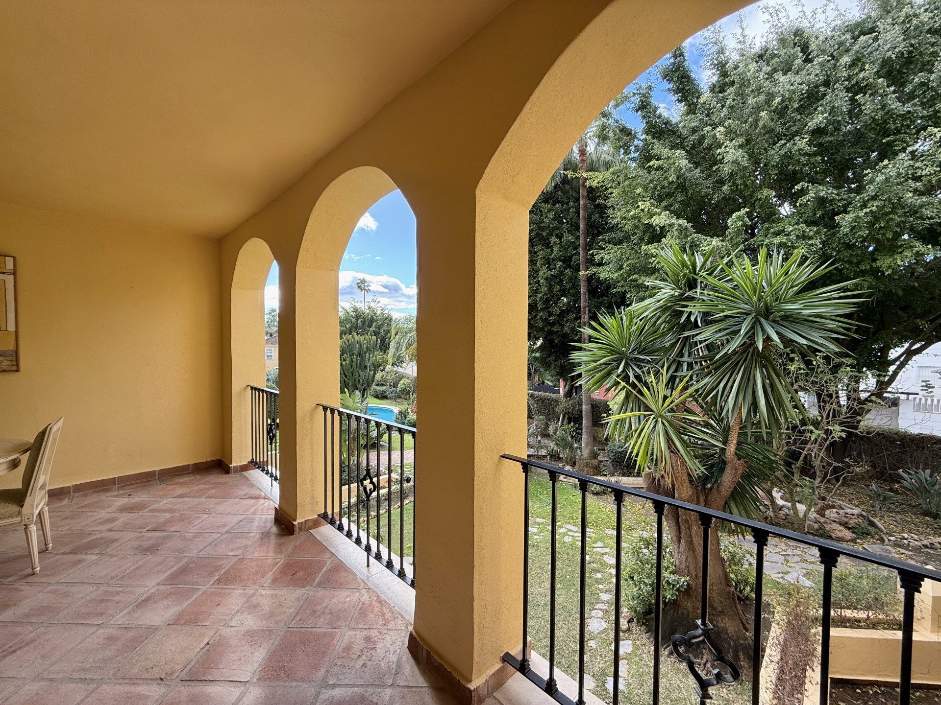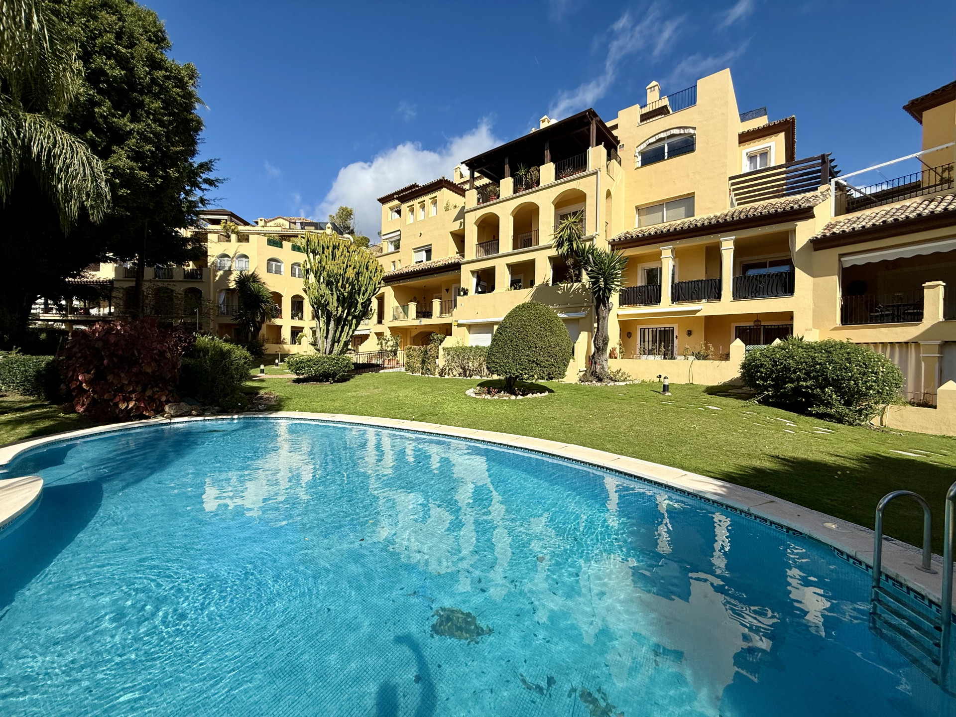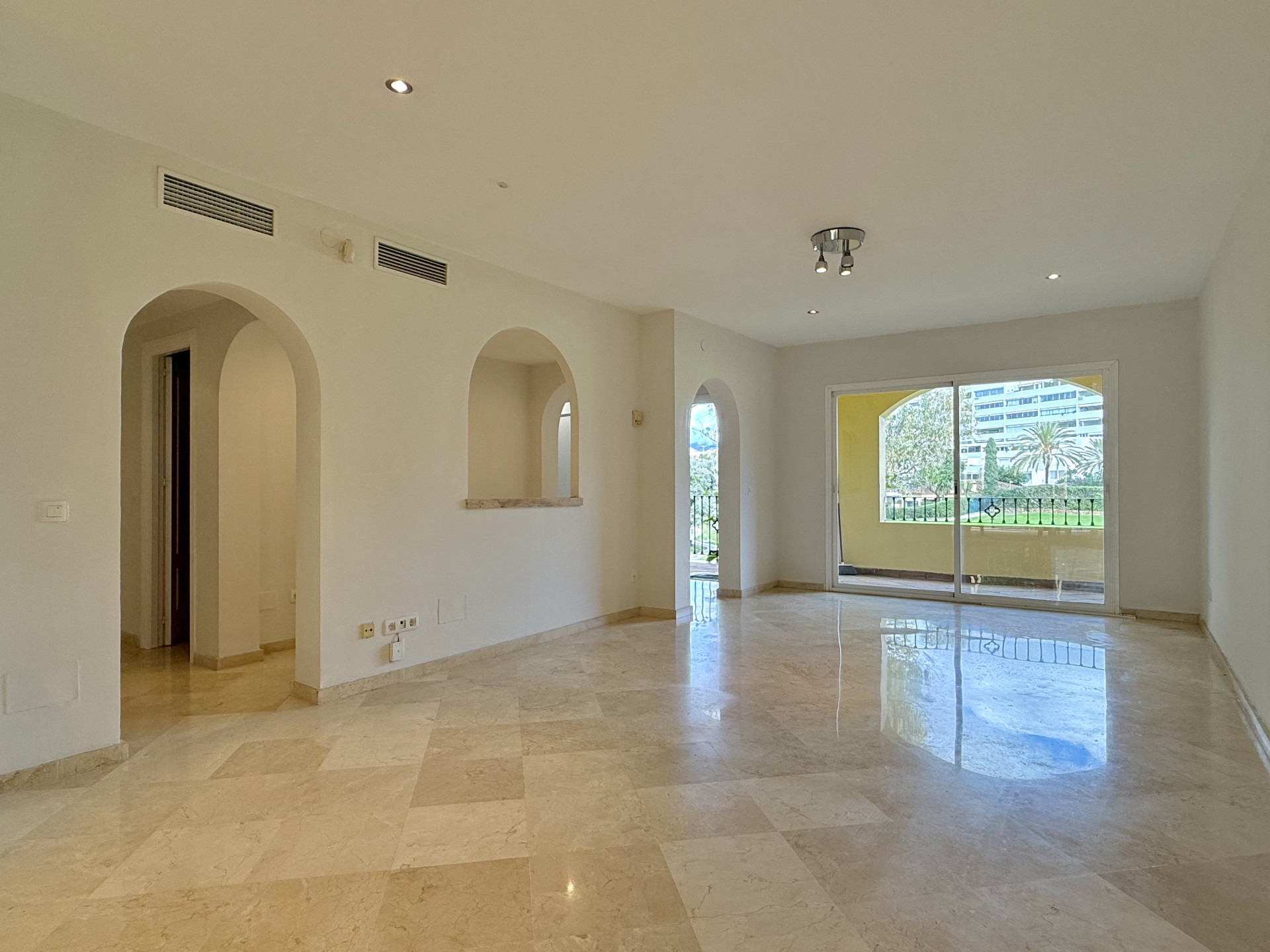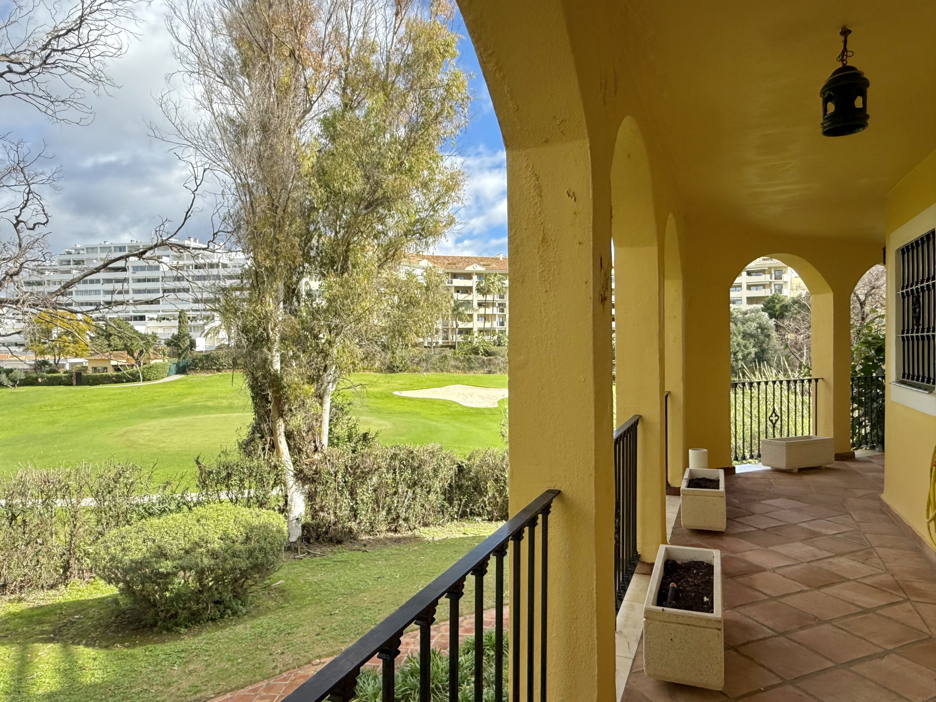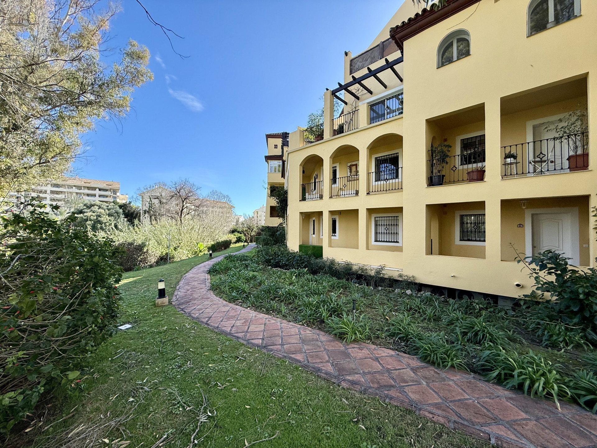This exclusive apartment, located in Guadalmina Alta, presents a unique opportunity. Originally designed with three bedrooms, it has been converted into a two-bedroom property. Situated on the frontline of the golf course, the residence offers privileged views of the course and a peaceful environment, while being close to all essential amenities such as shops, restaurants, schools, and the town center itself. The property features two sunny private terraces with southwest orientation. It comprises two bedrooms and two bathrooms, one of them en suite, ensuring comfort and privacy. The spacious and bright living and dining rooms connect directly to the covered terrace, from where you can enjoy views of both the communal garden and the golf course. The apartment is in good condition and is delivered unfurnished, allowing the buyer to personalize each space to their taste. Notable features include air conditioning, a fully equipped kitchen, and a practical storage room. The building is equipped with an elevator and is located within a gated community, providing extra security and peace of mind. Additionally, the property includes a private parking space. The development offers landscaped areas and a communal swimming pool, ideal for the enjoyment and relaxation of the whole family. Thanks to its excellent location, the apartment provides easy access to golf courses, shops, schools, and restaurants, making it an ideal option both as a permanent residence and for those seeking a second home on the Costa del Sol.