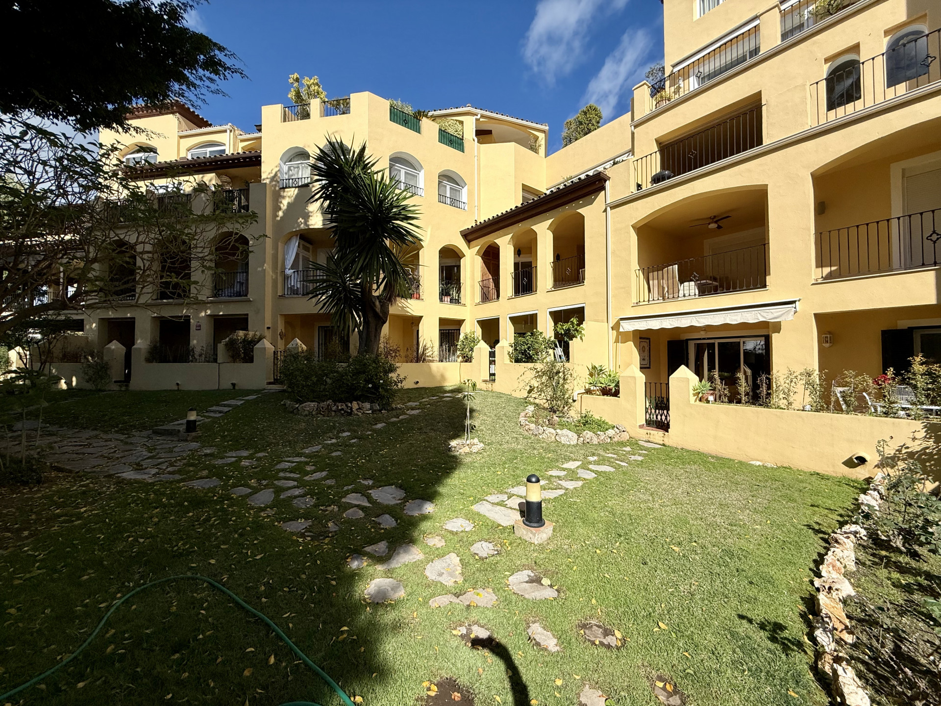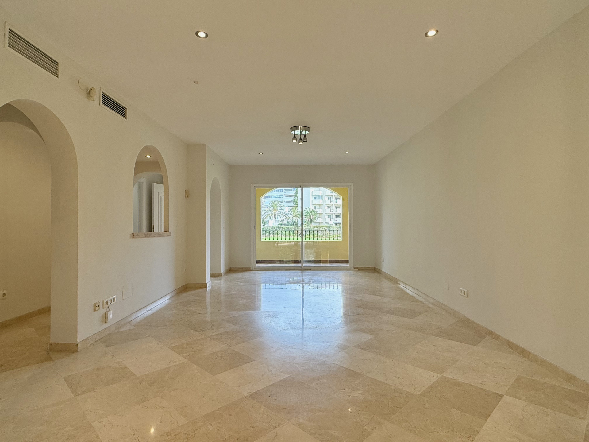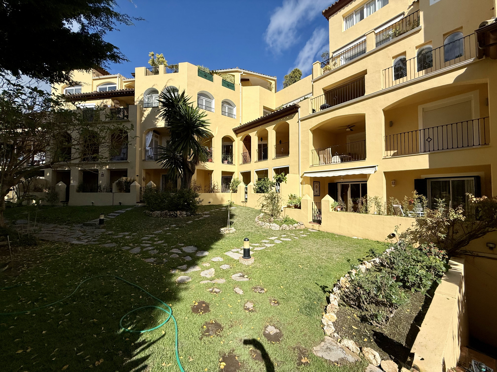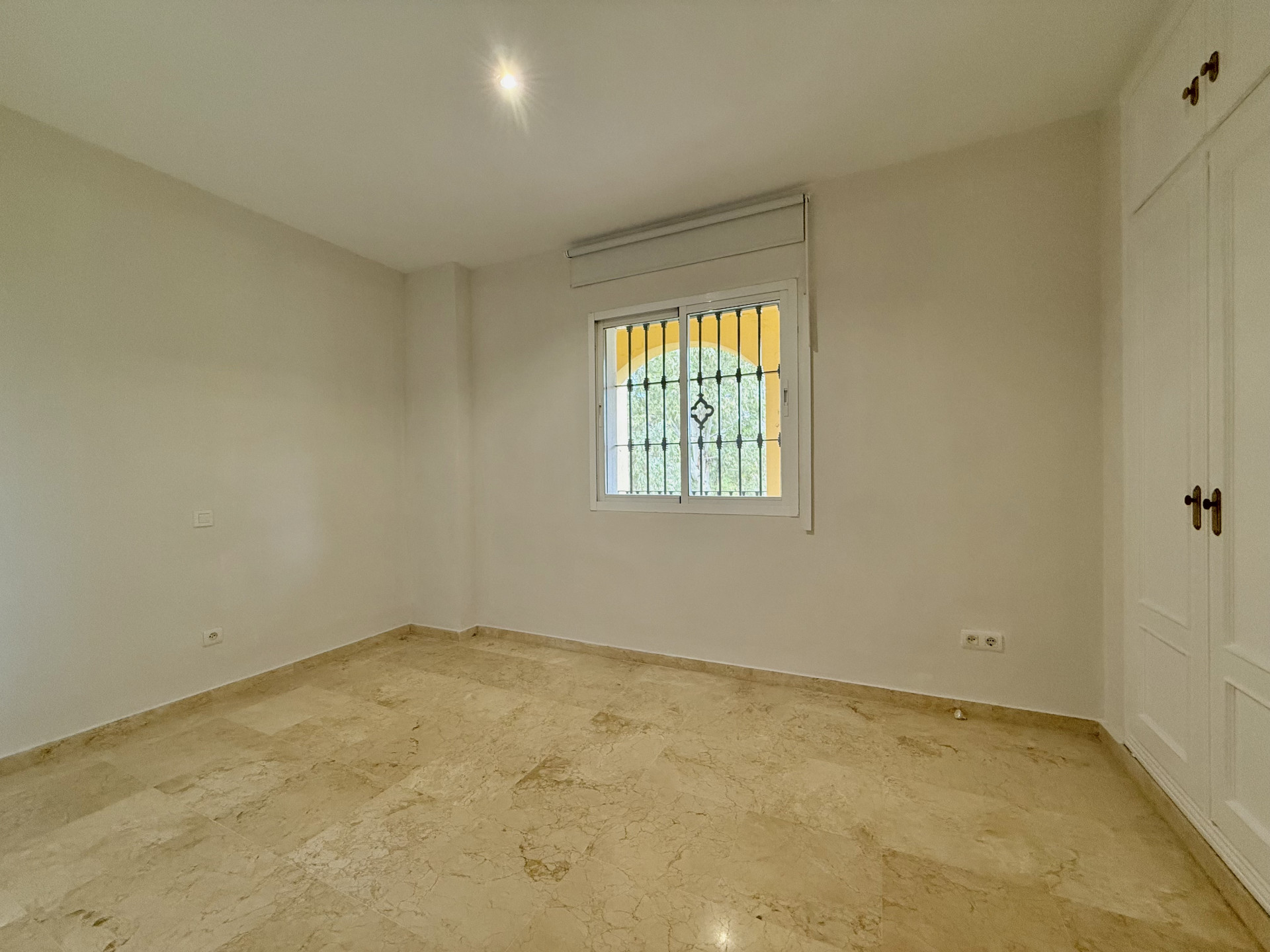 This exclusive apartment, located in Guadalmina Alta, presents a unique opportunity. Originally designed with three bedrooms, it has been converted into a two-bedroom property. Situated on the frontline of the golf course, the residence offers privileged views of the course and a peaceful environment, while being close to all essential amenities such as shops, restaurants, schools, and the town center itself. The property features two sunny private terraces with southwest orientation. It comprises two bedrooms and two bathrooms, one of them en suite, ensuring comfort and privacy. The spacious and bright living and dining rooms connect directly to the covered terrace, from where you can enjoy views of both the communal garden and the golf course. The apartment is in good condition and is delivered unfurnished, allowing the buyer to personalize each space to their taste. Notable features include air conditioning, a fully equipped kitchen, and a practical storage room. The building is equipped with an elevator and is located within a gated community, providing extra security and peace of mind. Additionally, the property includes a private parking space. The development offers landscaped areas and a communal swimming pool, ideal for the enjoyment and relaxation of the whole family. Thanks to its excellent location, the apartment provides easy access to golf courses, shops, schools, and restaurants, making it an ideal option both as a permanent residence and for those seeking a second home on the Costa del Sol.