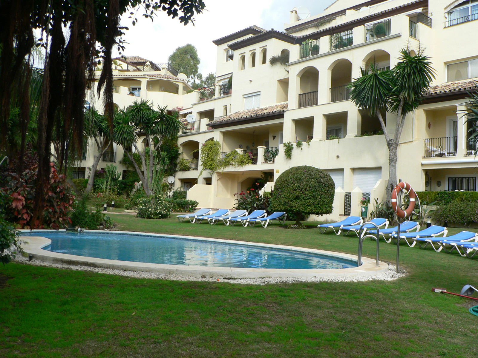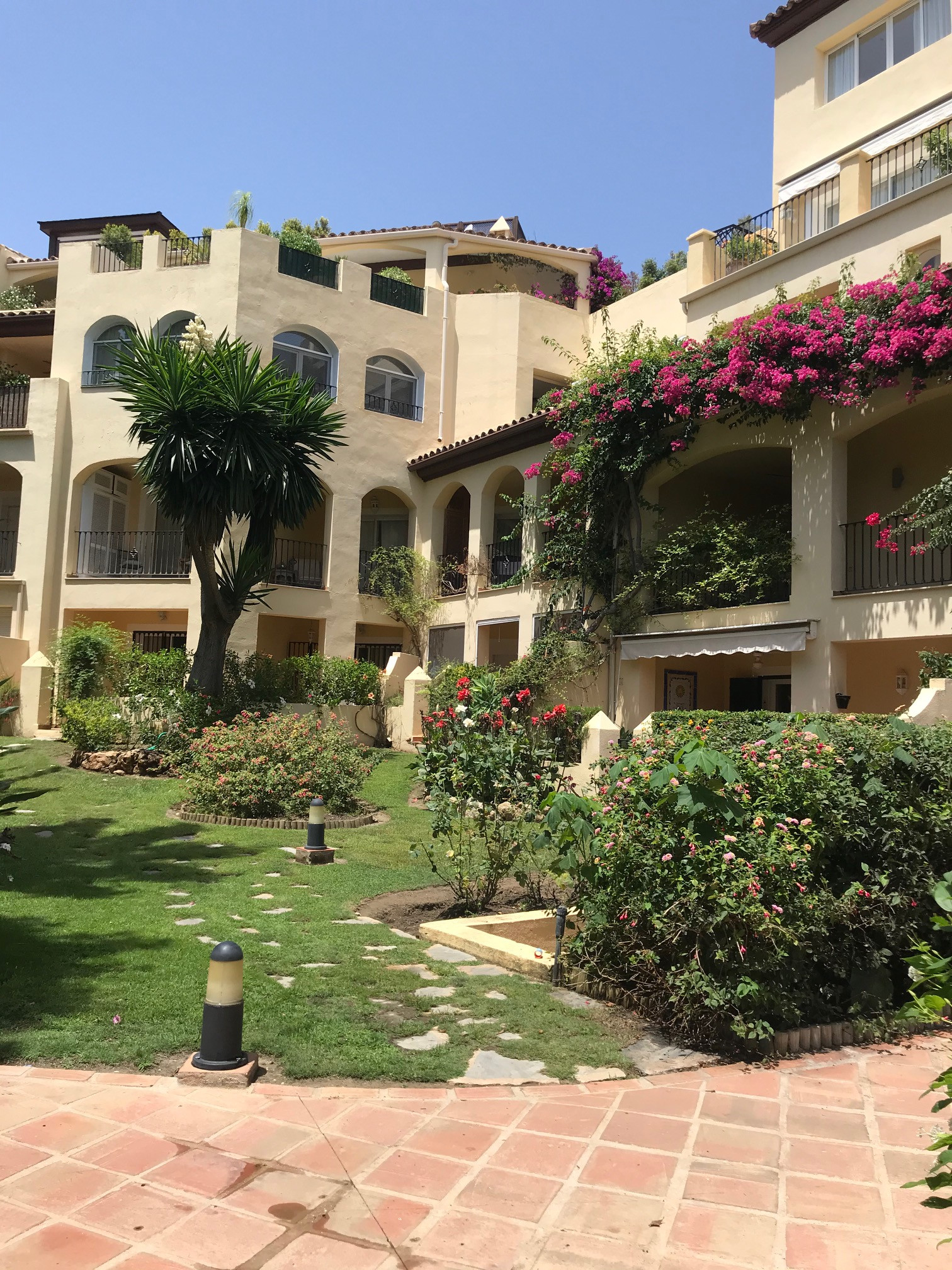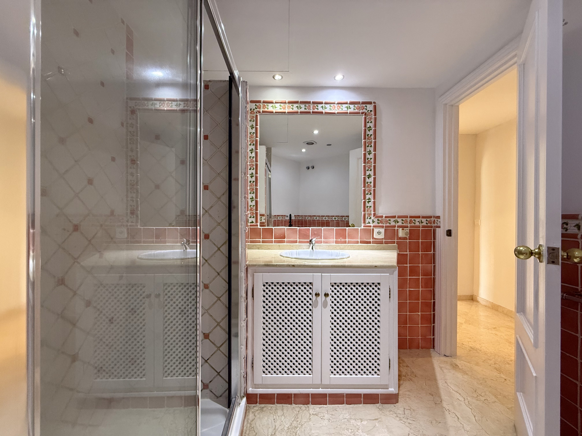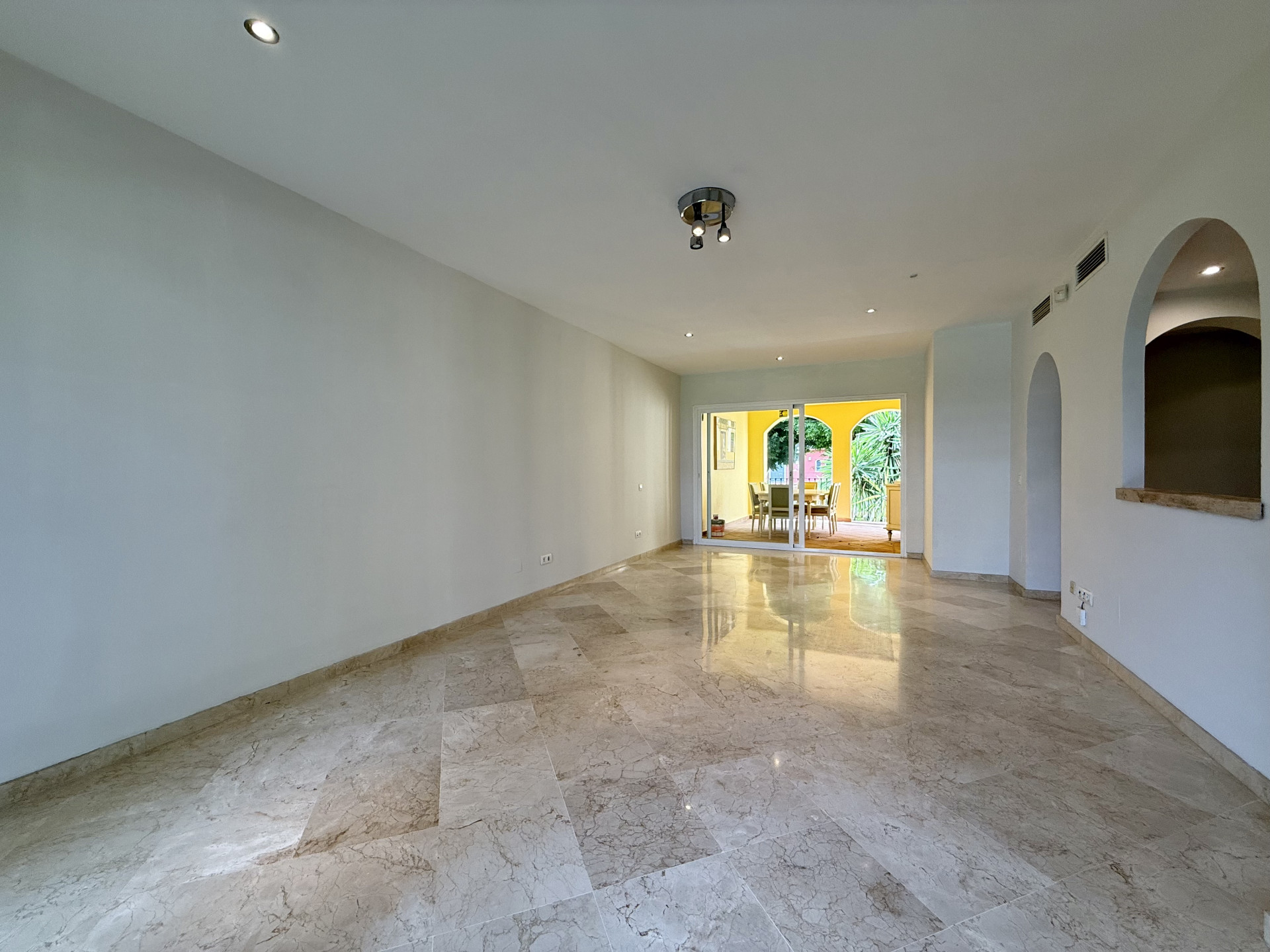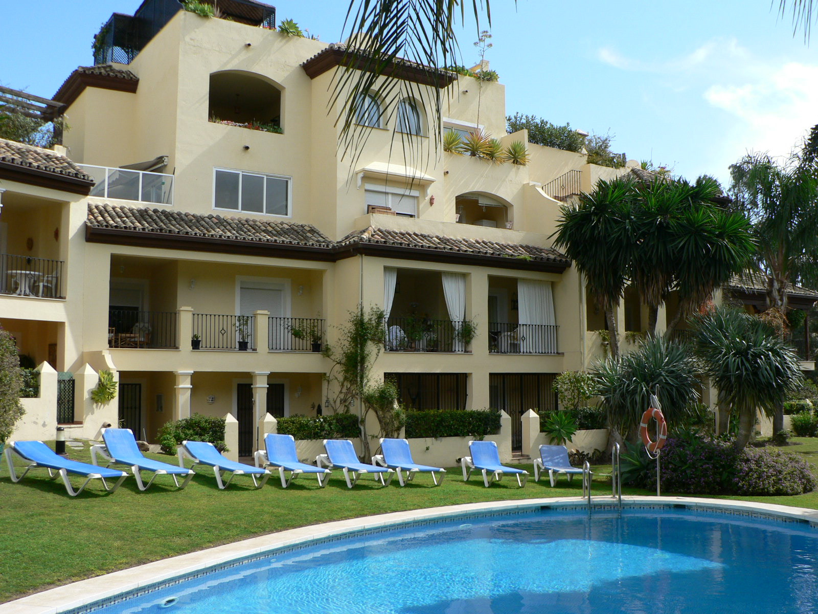 This exclusive apartment, located in Guadalmina Alta, presents a unique opportunity. Originally designed with three bedrooms, it has been converted into a two-bedroom property. Situated on the frontline of the golf course, the residence offers privileged views of the course and a peaceful environment, while being close to all essential amenities such as shops, restaurants, schools, and the town center itself. The property features two sunny private terraces with southwest orientation. It comprises two bedrooms and two bathrooms, one of them en suite, ensuring comfort and privacy. The spacious and bright living and dining rooms connect directly to the covered terrace, from where you can enjoy views of both the communal garden and the golf course. The apartment is in good condition and is delivered unfurnished, allowing the buyer to personalize each space to their taste. Notable features include air conditioning, a fully equipped kitchen, and a practical storage room. The building is equipped with an elevator and is located within a gated community, providing extra security and peace of mind. Additionally, the property includes a private parking space. The development offers landscaped areas and a communal swimming pool, ideal for the enjoyment and relaxation of the whole family. Thanks to its excellent location, the apartment provides easy access to golf courses, shops, schools, and restaurants, making it an ideal option both as a permanent residence and for those seeking a second home on the Costa del Sol.