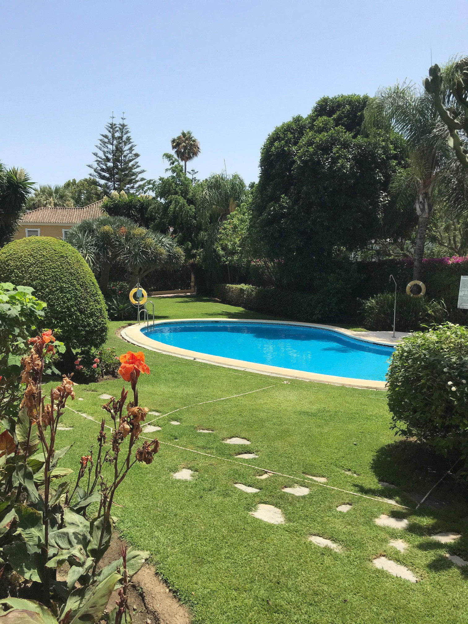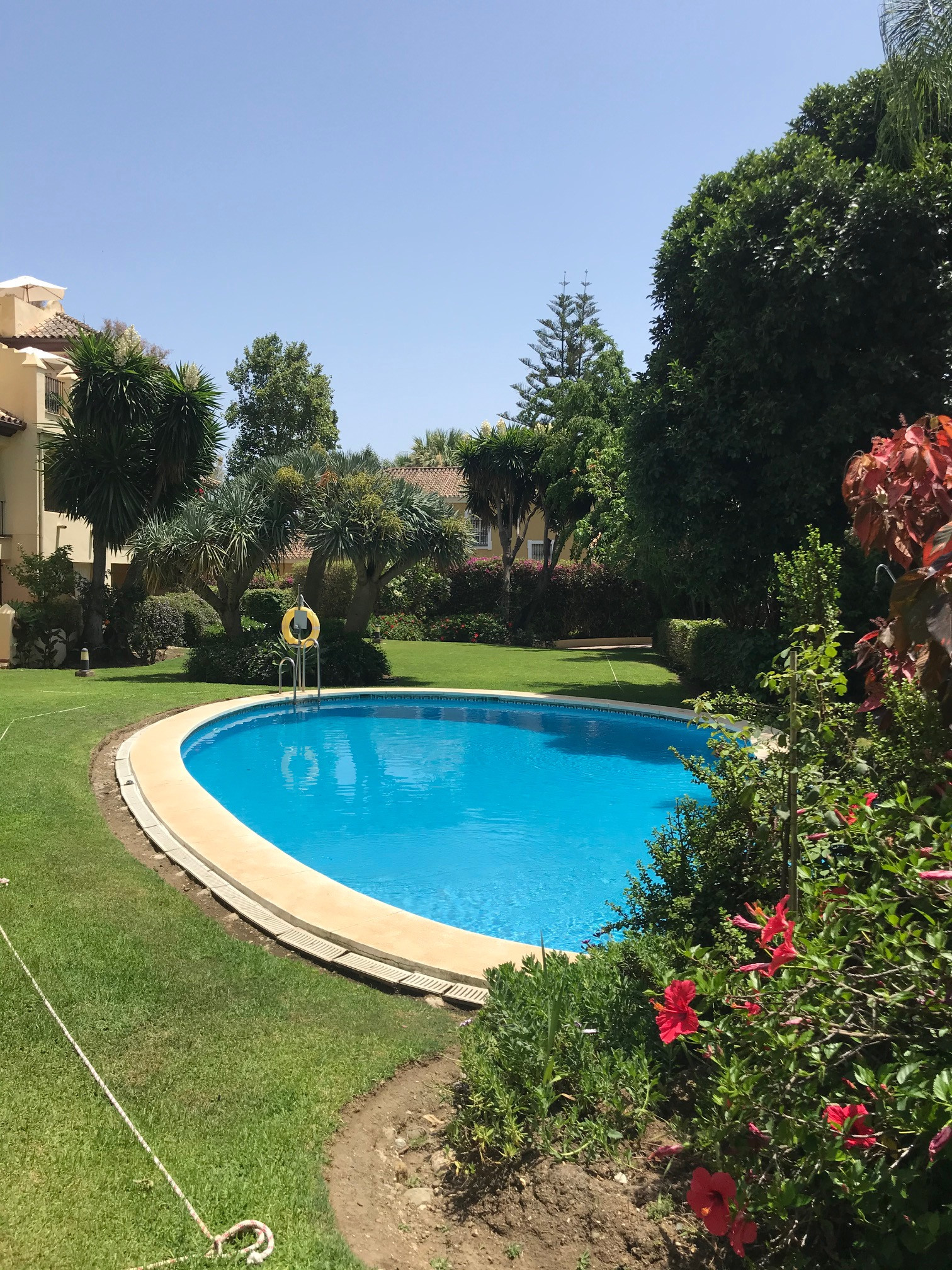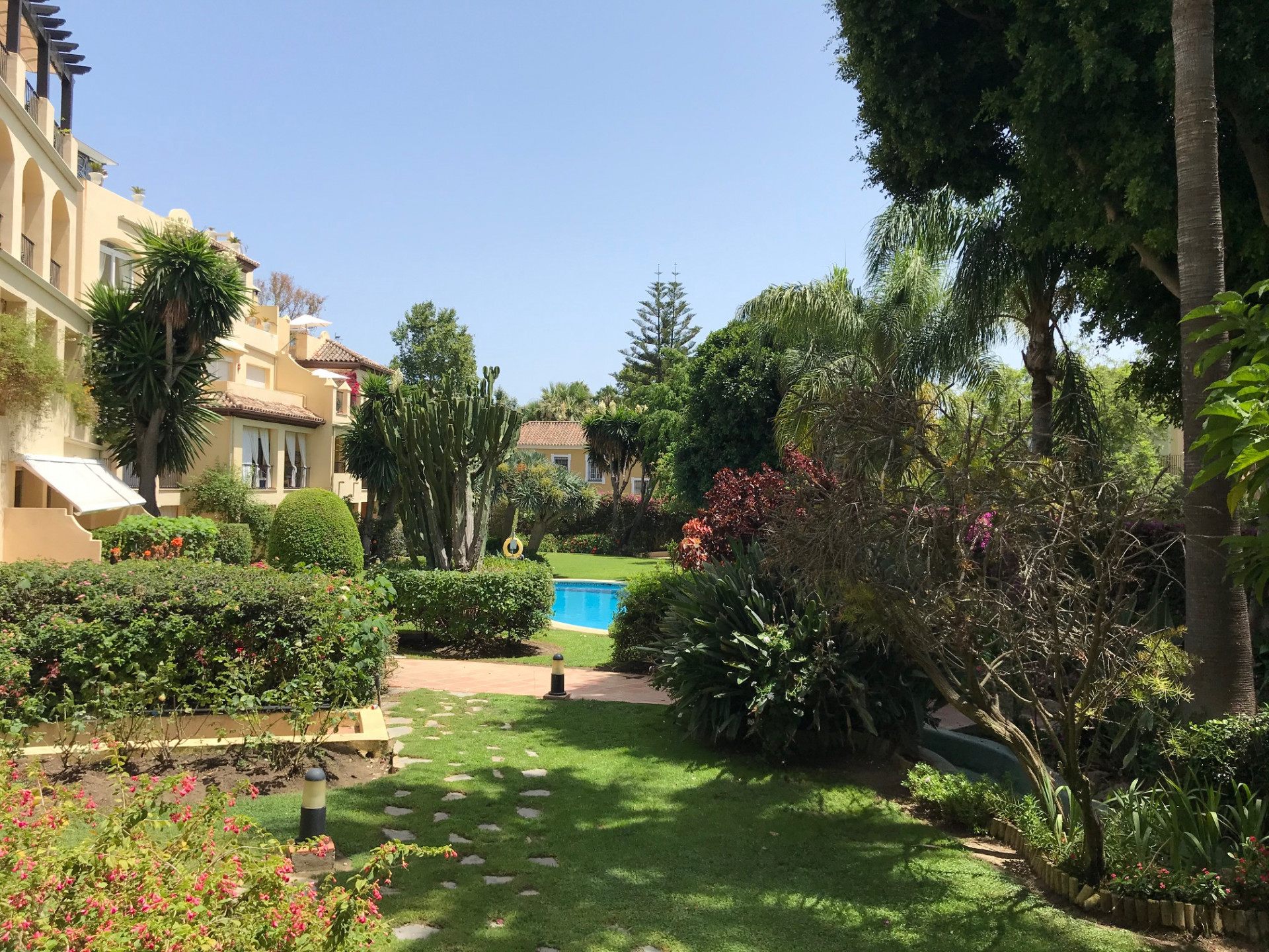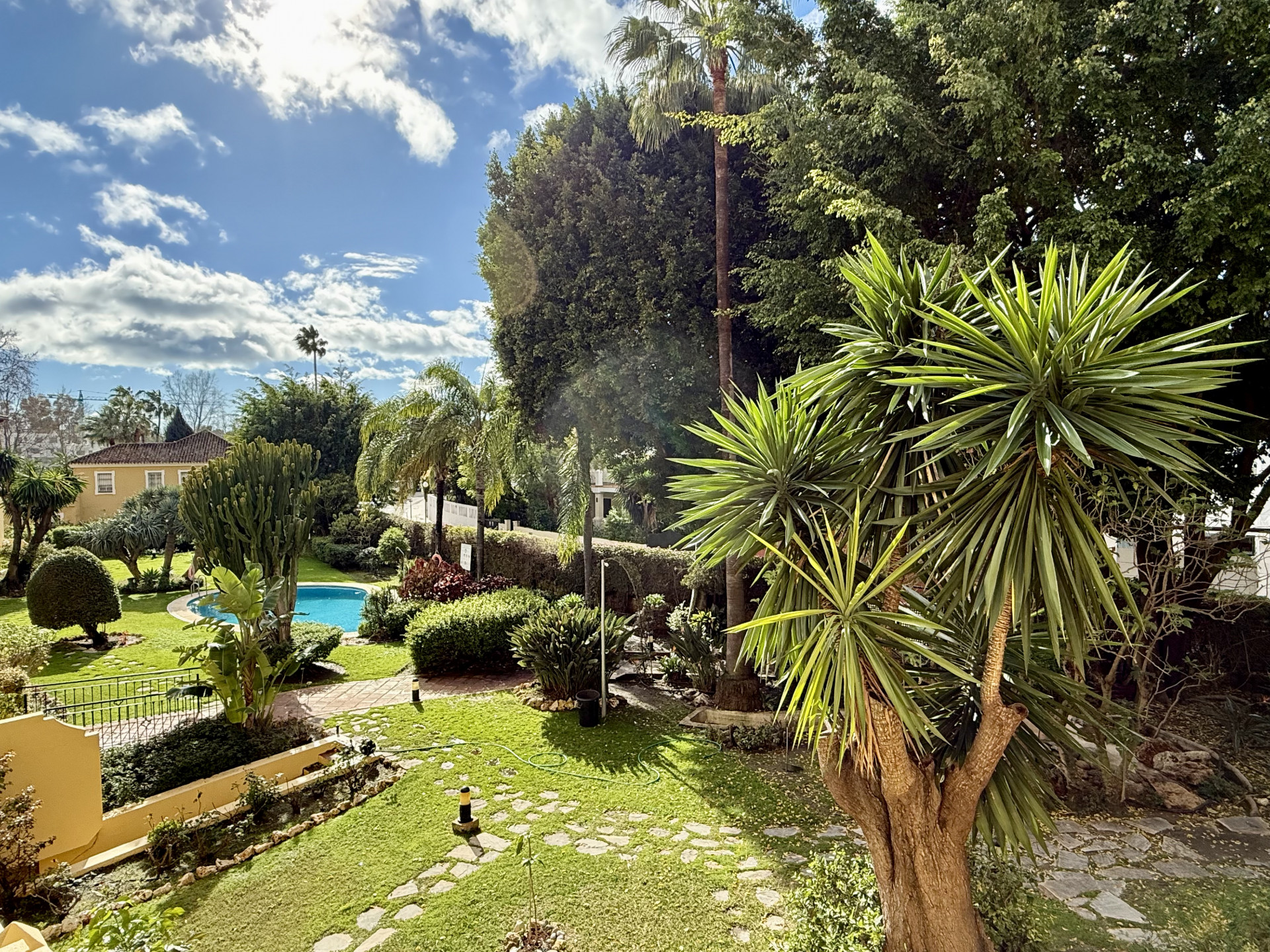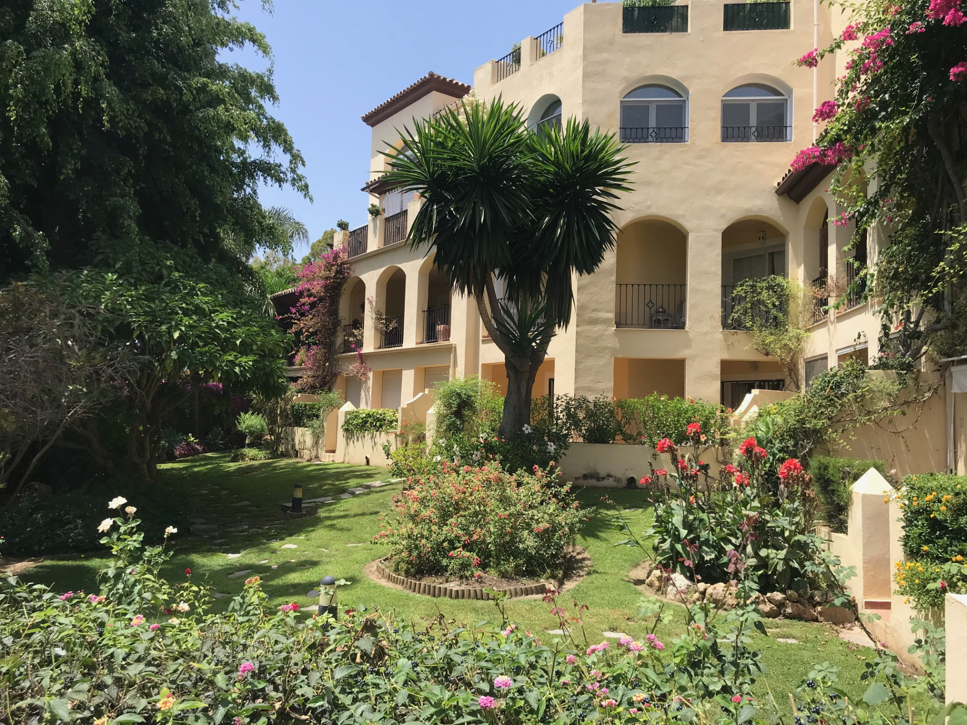 This exclusive apartment, located in Guadalmina Alta, presents a unique opportunity. Originally designed with three bedrooms, it has been converted into a two-bedroom property. Situated on the frontline of the golf course, the residence offers privileged views of the course and a peaceful environment, while being close to all essential amenities such as shops, restaurants, schools, and the town center itself. The property features two sunny private terraces with southwest orientation. It comprises two bedrooms and two bathrooms, one of them en suite, ensuring comfort and privacy. The spacious and bright living and dining rooms connect directly to the covered terrace, from where you can enjoy views of both the communal garden and the golf course. The apartment is in good condition and is delivered unfurnished, allowing the buyer to personalize each space to their taste. Notable features include air conditioning, a fully equipped kitchen, and a practical storage room. The building is equipped with an elevator and is located within a gated community, providing extra security and peace of mind. Additionally, the property includes a private parking space. The development offers landscaped areas and a communal swimming pool, ideal for the enjoyment and relaxation of the whole family. Thanks to its excellent location, the apartment provides easy access to golf courses, shops, schools, and restaurants, making it an ideal option both as a permanent residence and for those seeking a second home on the Costa del Sol.