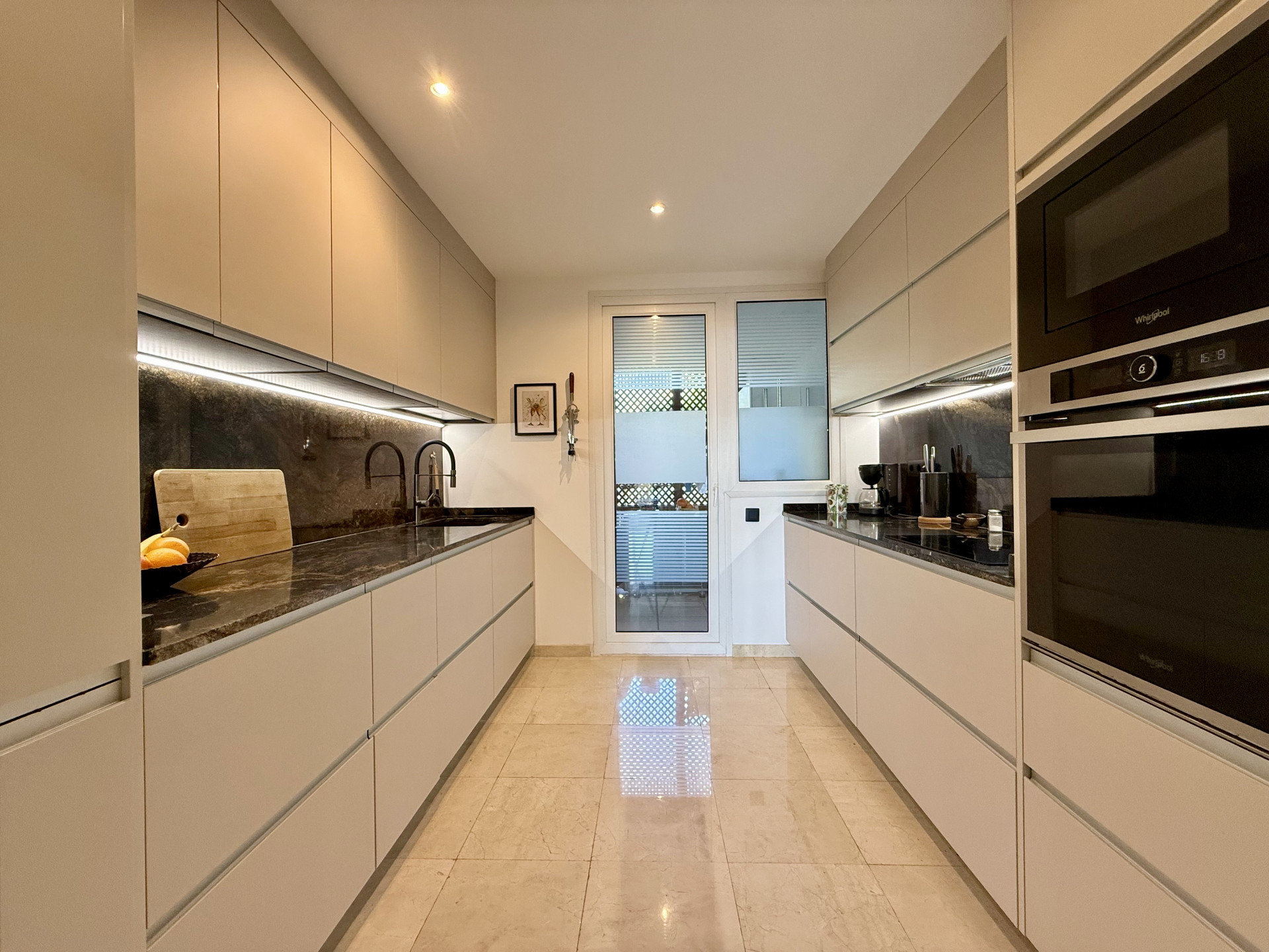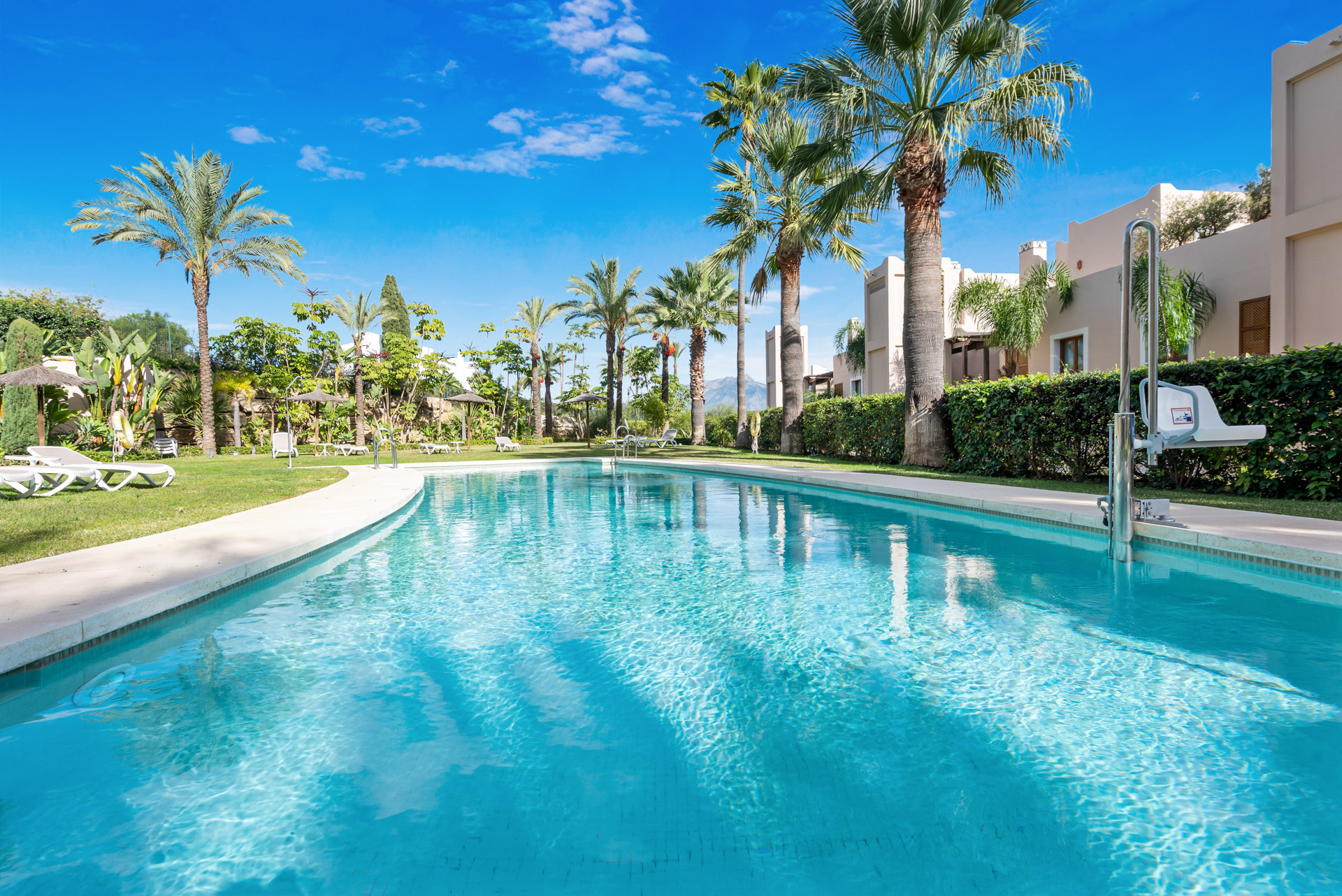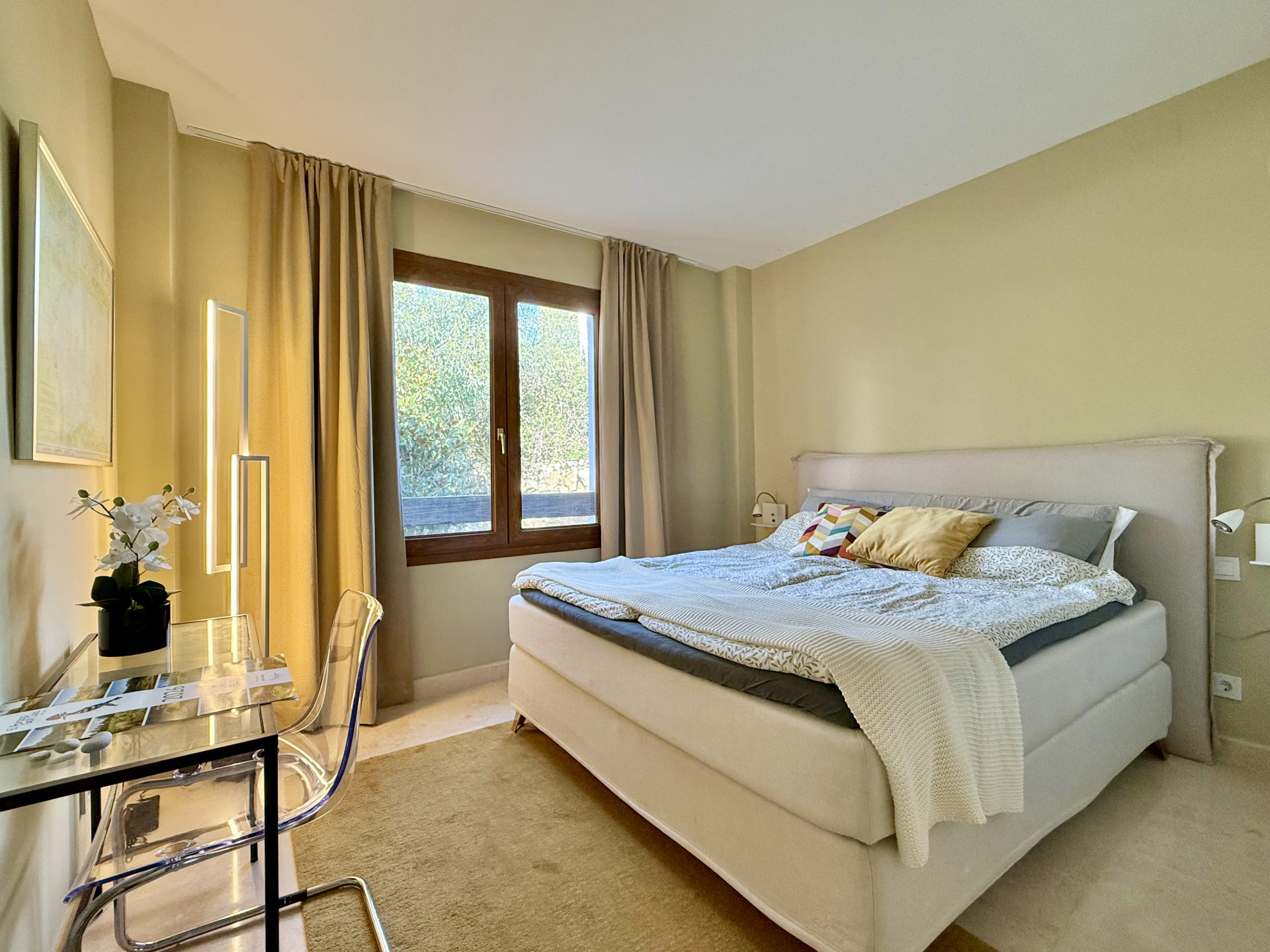 Regarding amenities, the apartment is equipped with air conditioning and is in excellent condition. It is part of a gated community that offers a swimming pool and communal gardens, lift as well as a private garage for two cars. The development also features well-maintained common areas and controlled access, ensuring privacy and peace of mind.