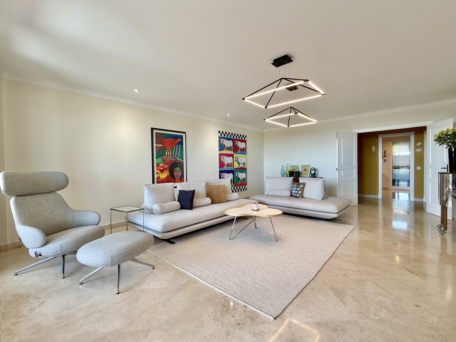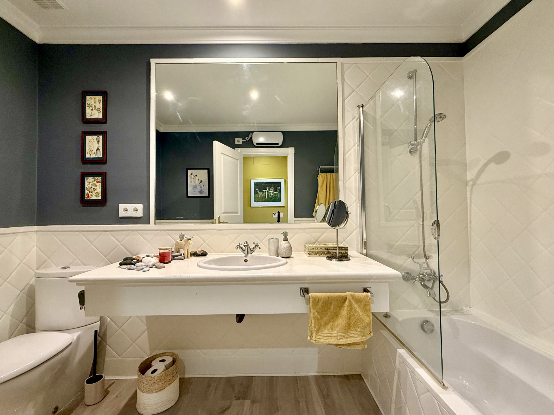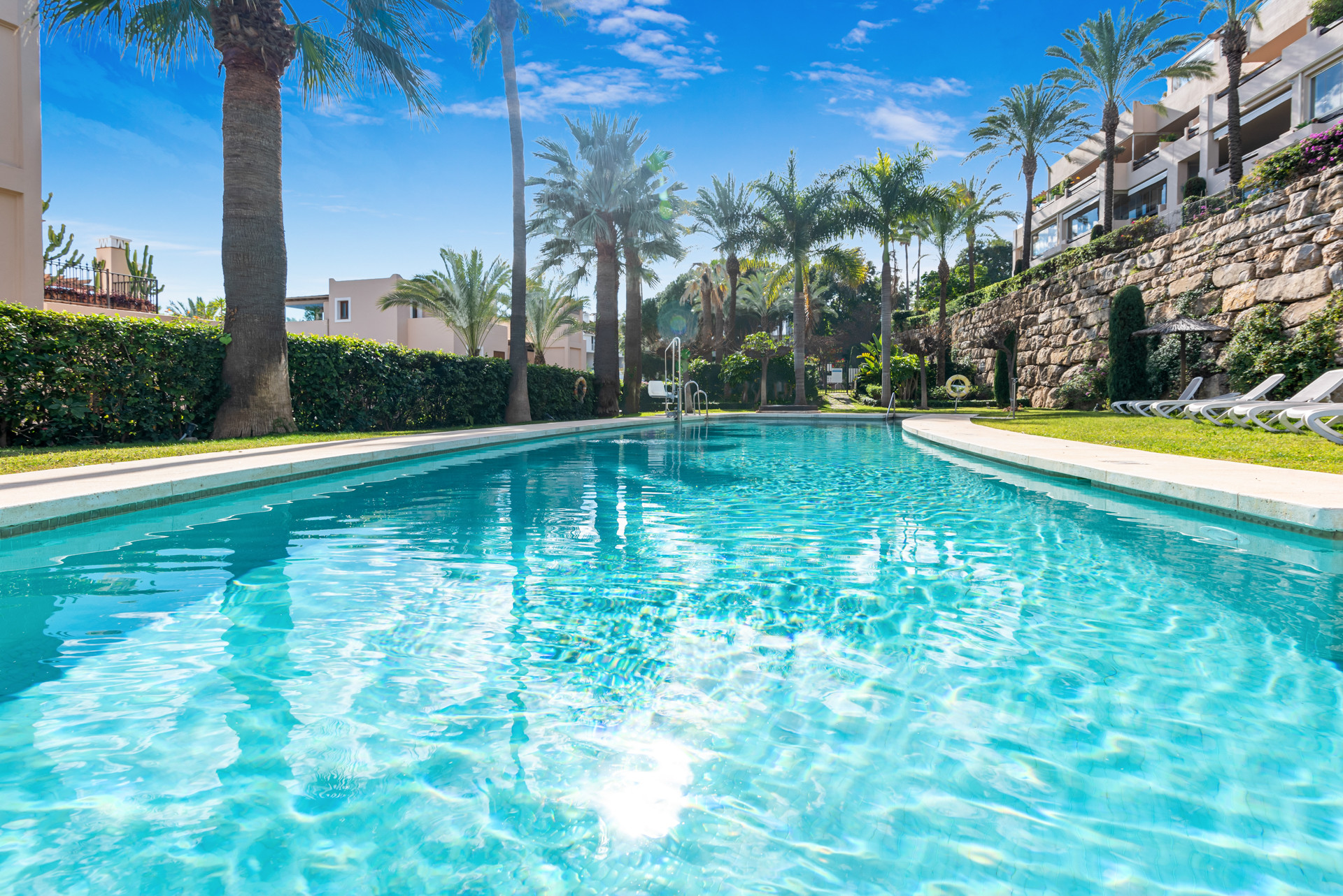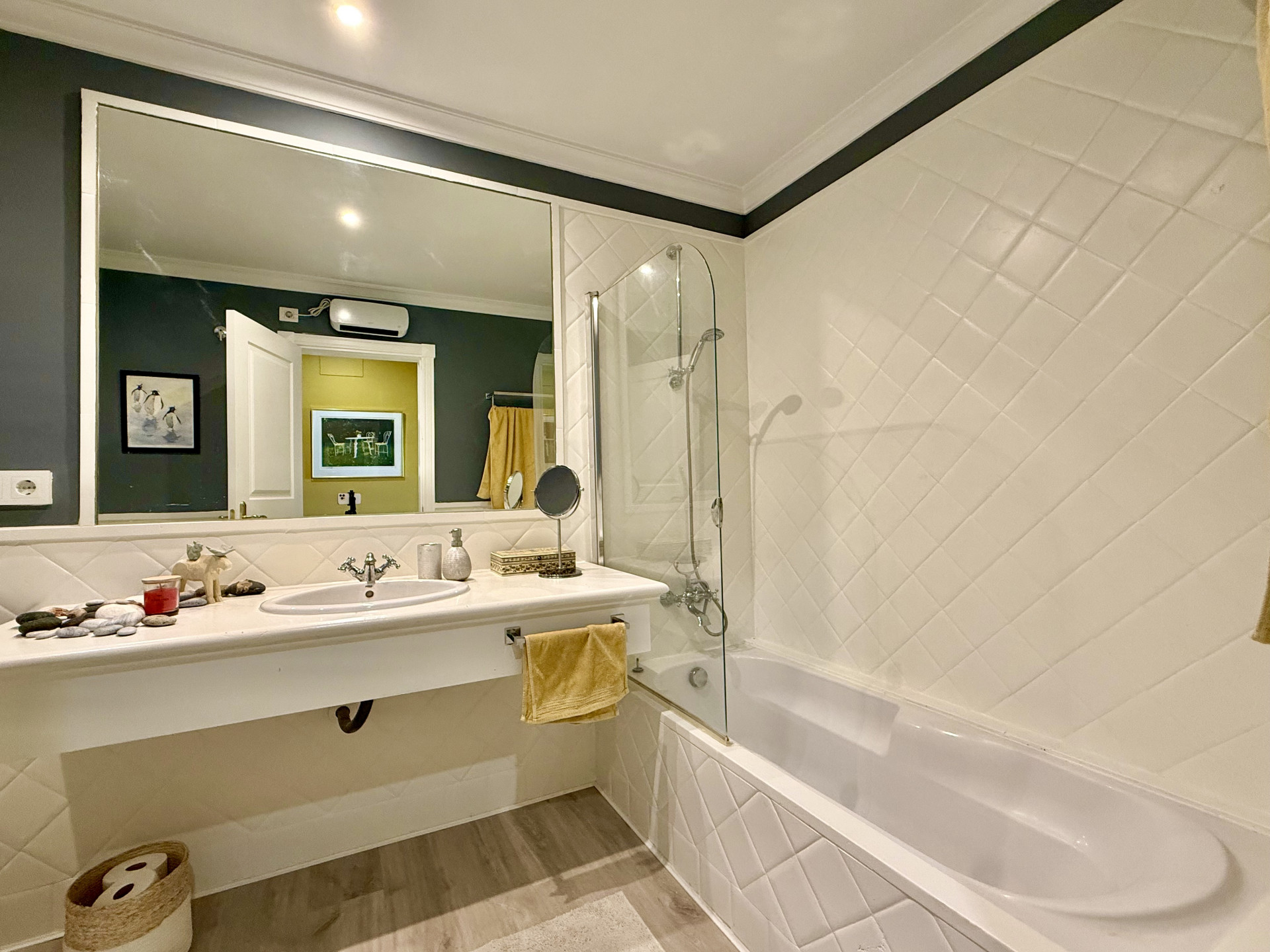 Regarding amenities, the apartment is equipped with air conditioning and is in excellent condition. It is part of a gated community that offers a swimming pool and communal gardens, lift as well as a private garage for two cars. The development also features well-maintained common areas and controlled access, ensuring privacy and peace of mind.