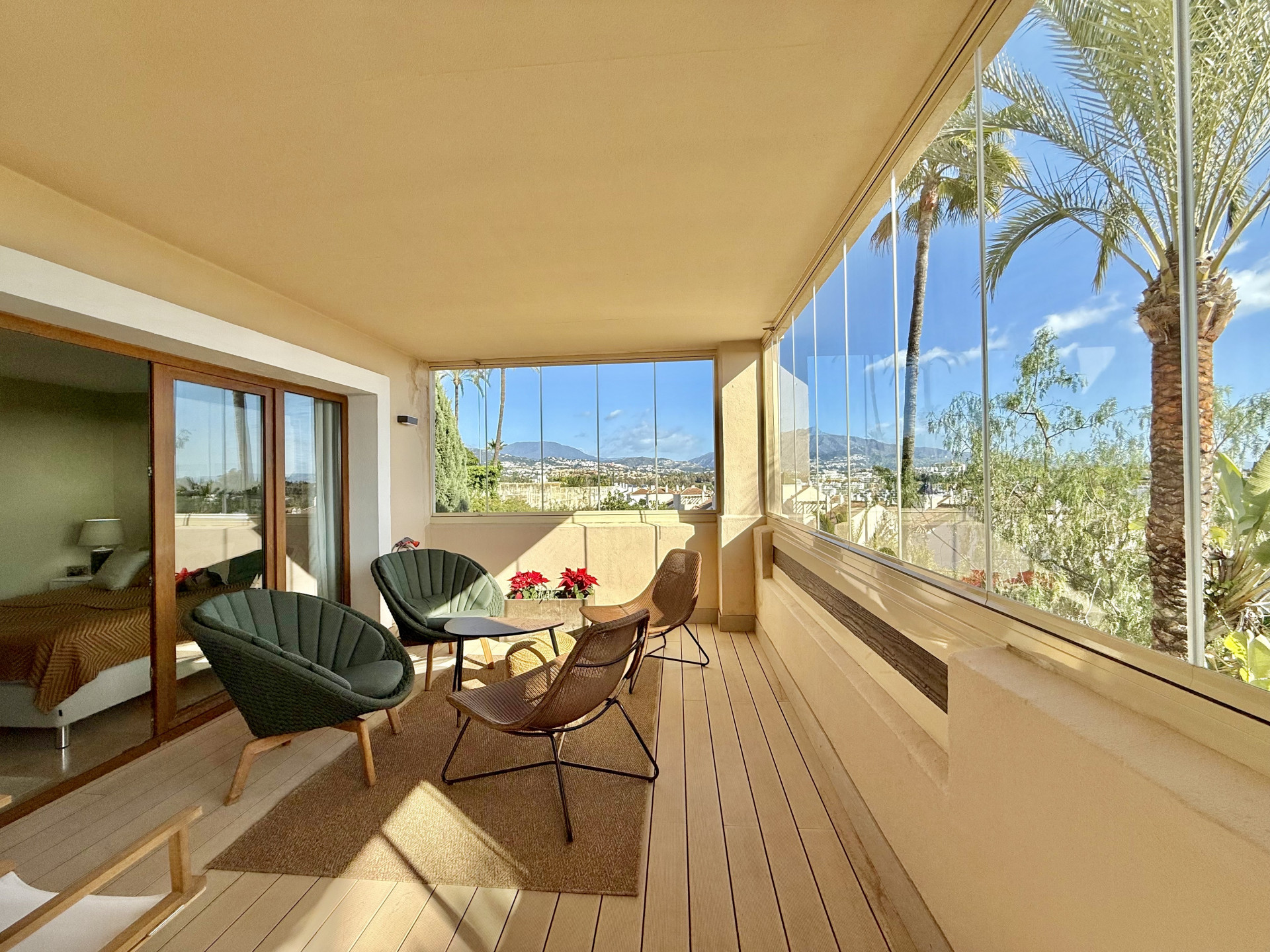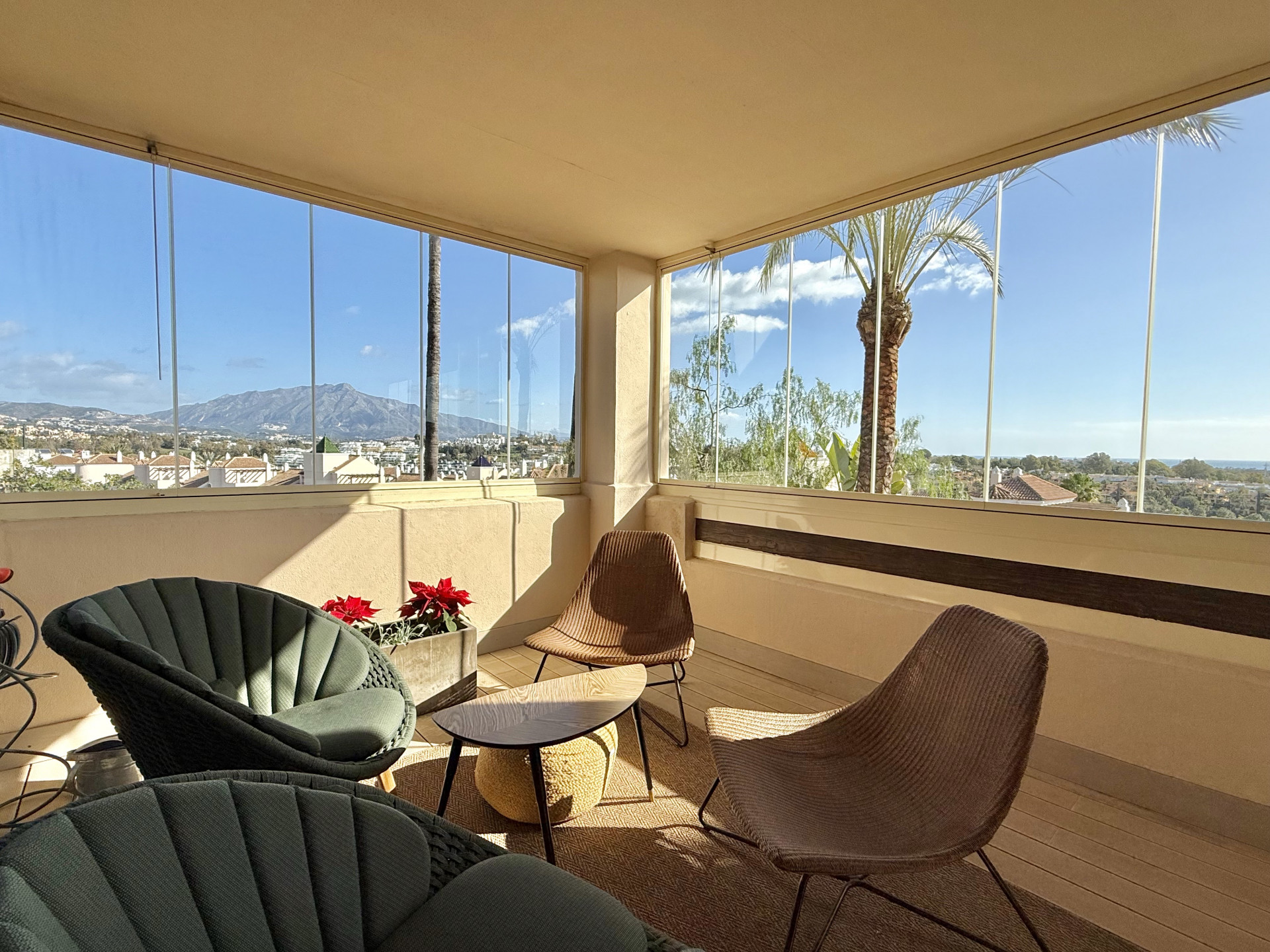 This spacious apartment is located in the prestigious Paraiso Hills development. The property stands out for its sunny terraces with panoramic views of the sea and mountains, providing a bright and tranquil setting in one of the most sought-after residential areas on the Costa del Sol. The home features three bedrooms, two bathrooms (one of them en suite), and is designed to offer maximum comfort. The living-dining room is large and bright, with direct access to the private terrace, ideal for enjoying the Mediterranean climate all year round. The kitchen is fully equipped and includes a practical independent laundry room. Built-in wardrobes in the bedrooms allow for efficient storage, while the additional storage room facilitates organization of the space.