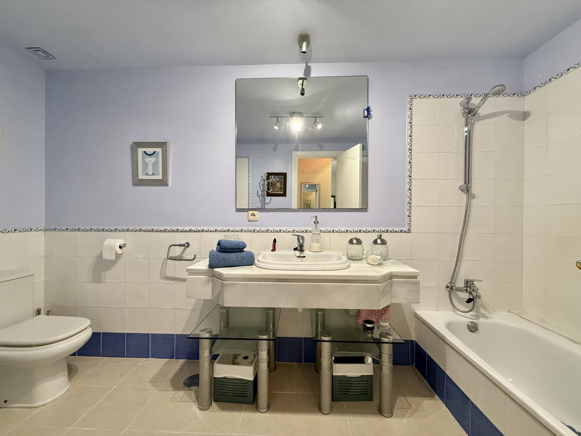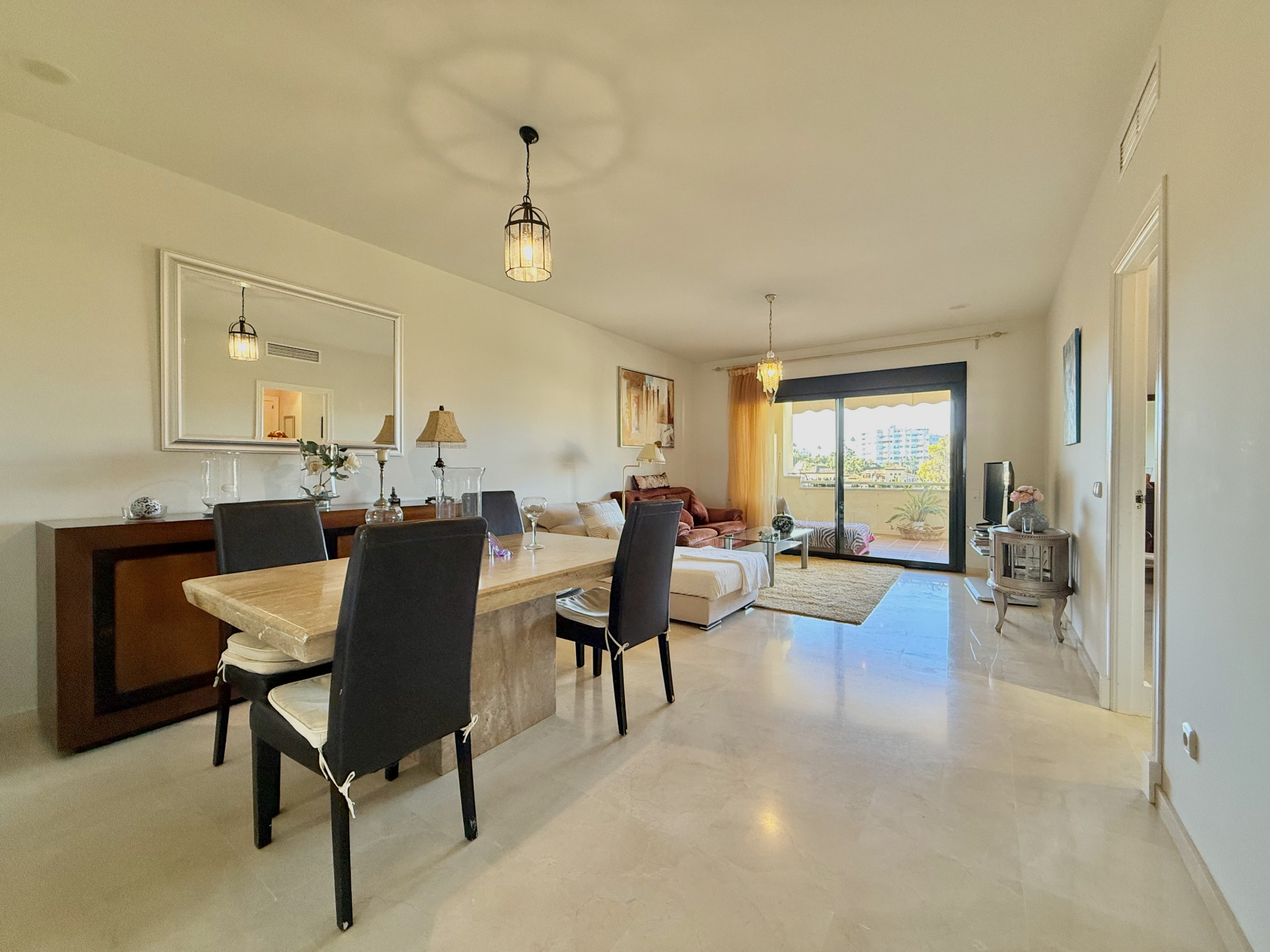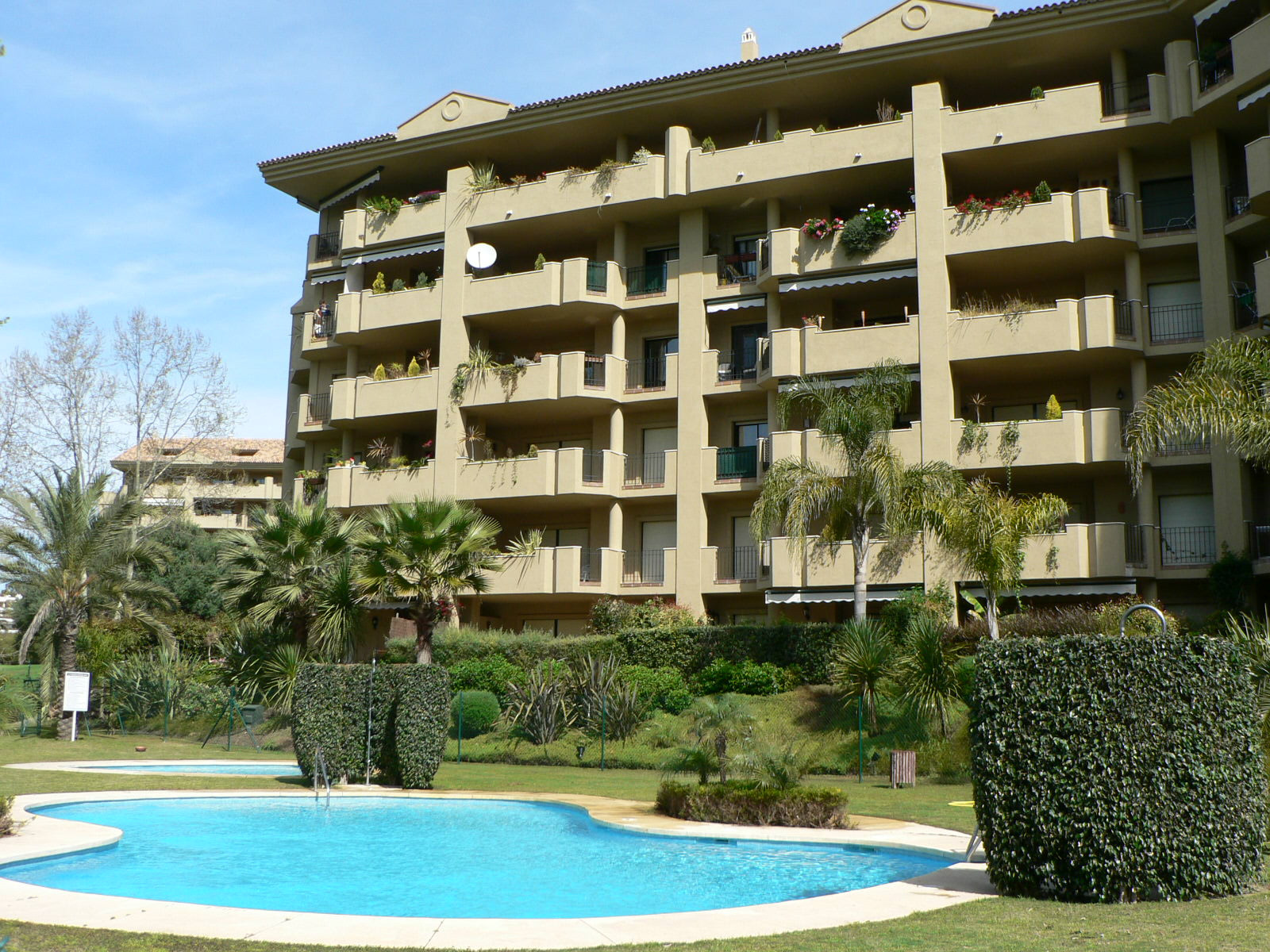 Excelente oportunidad! vistas panorámicas, orientación oeste, en primera línea de golf en Guadalmina Alta. Ubicación inmejorable a corta distancia del centro de San Pedro de Alcántara, donde encontrará fácilmente tiendas, colegios y todos los servicios necesarios. A tan solo 10 minutos en coche de Puerto Banús, lo que convierte esta propiedad en una combinación insuperable de tranquilidad, comodidad y estilo de vida. El apartamento consta de 2 dormitorios y 2 baños, el dormitorio principal con baño en suite y acceso directo a la terraza. Amplio salón-comedor con acceso directo a una gran terraza cubierta, ideal para disfrutar durante todo el año de la vida al aire libre y de las vistas abiertas. La cocina está totalmente equipada e incluye un lavadero independiente. La orientación oeste ofrece abundante luz natural y hermosos atardeceres. Extras incluidos: aire acondicionado frío/calor, armarios empotrados, plaza de garaje subterránea y trastero, todo incluido en el precio. Complejo cerrado y seguro con vigilancia 24 horas, jardines paisajísticos, varias piscinas y gimnasio totalmente equipado. Esta magnífica propiedad cuenta con Licencia de Primera Ocupación (LPO).