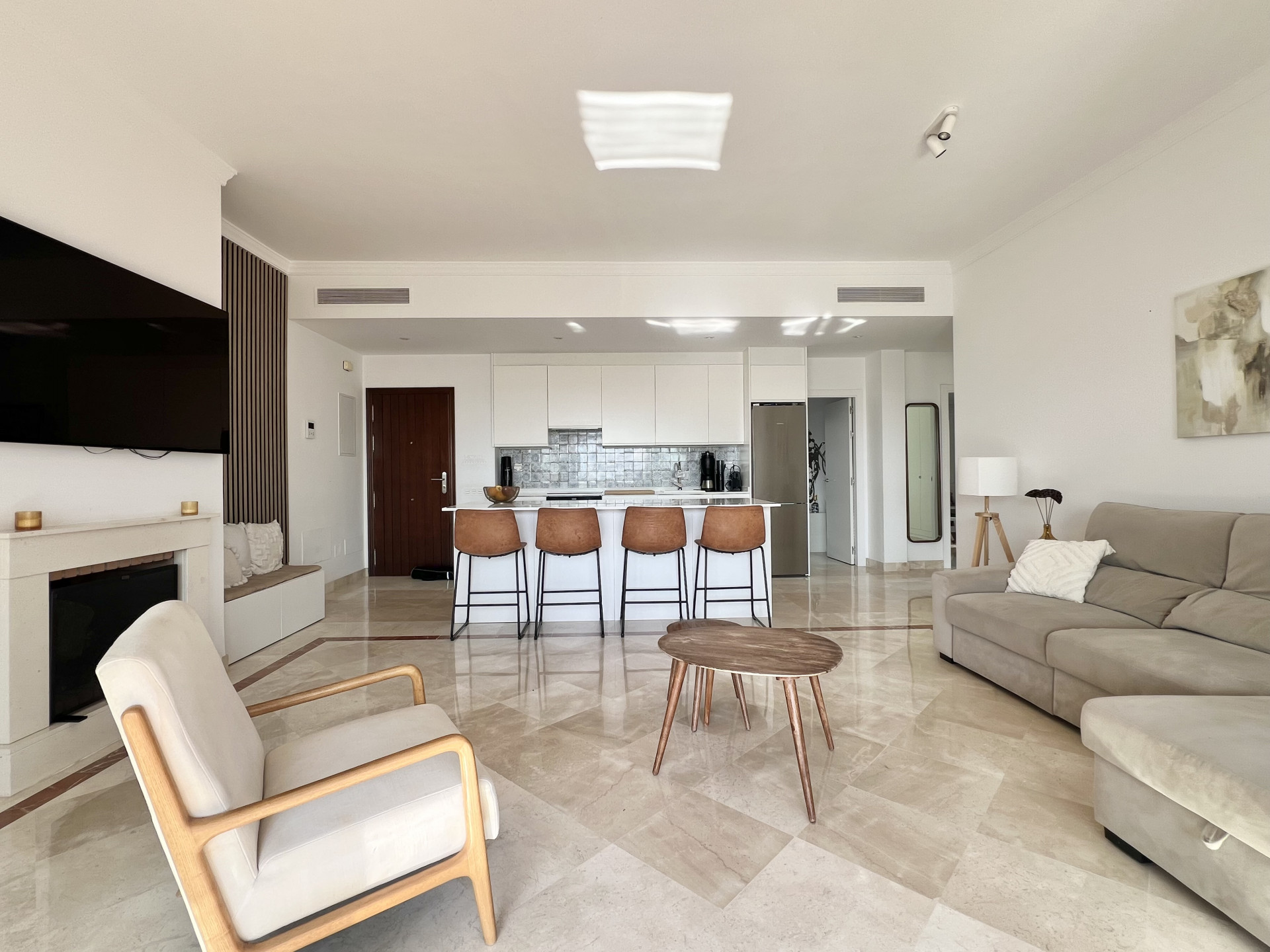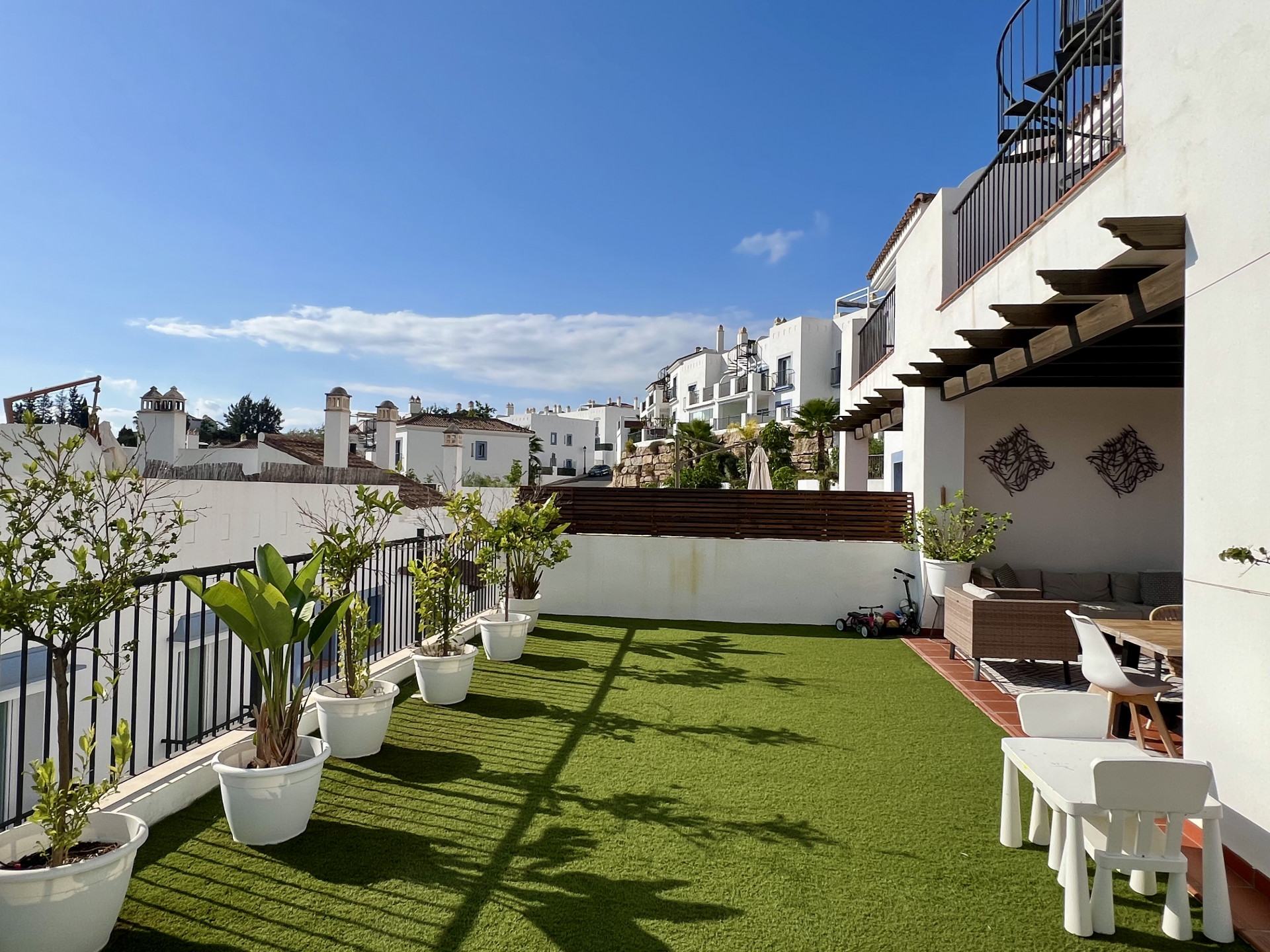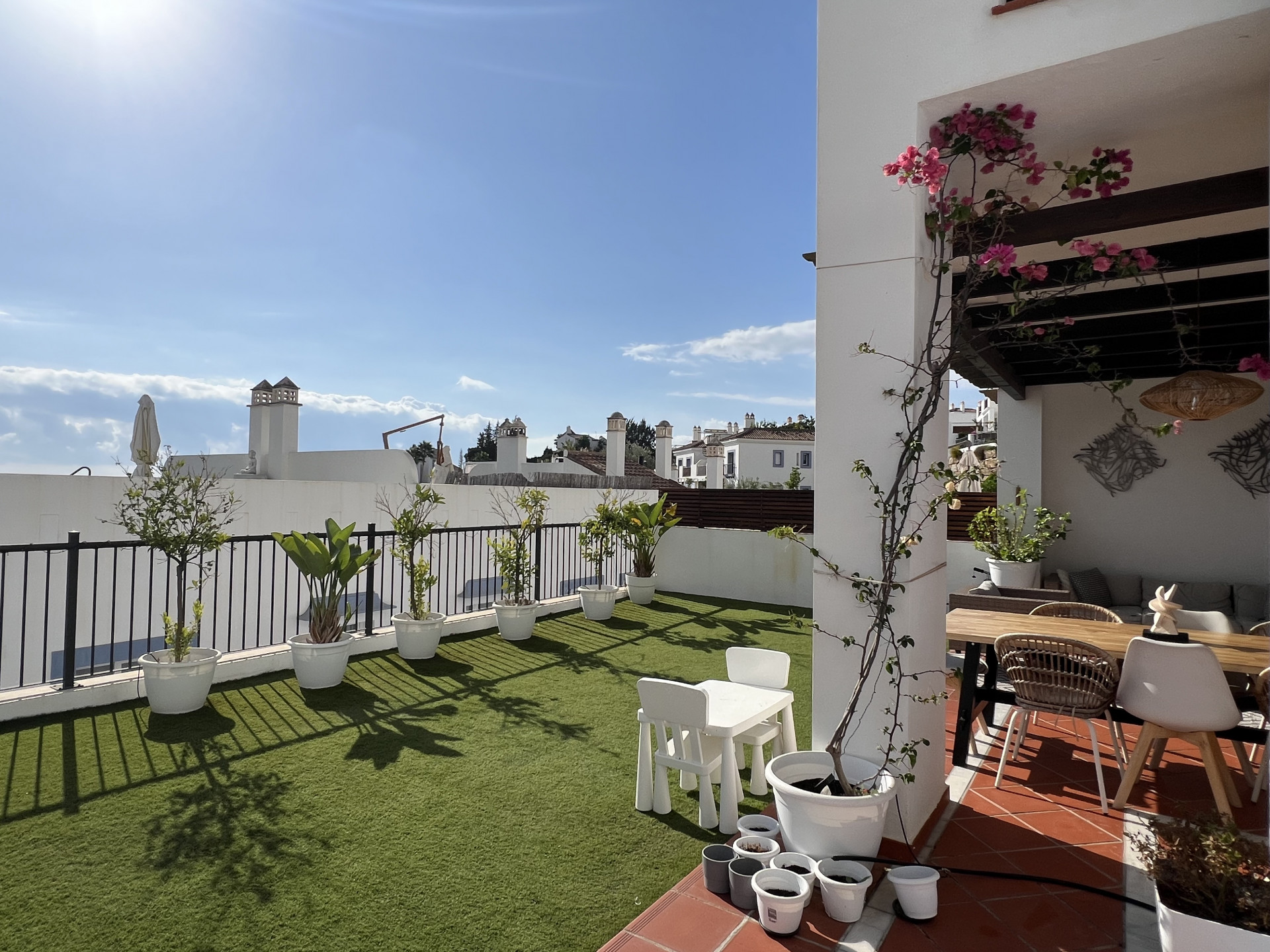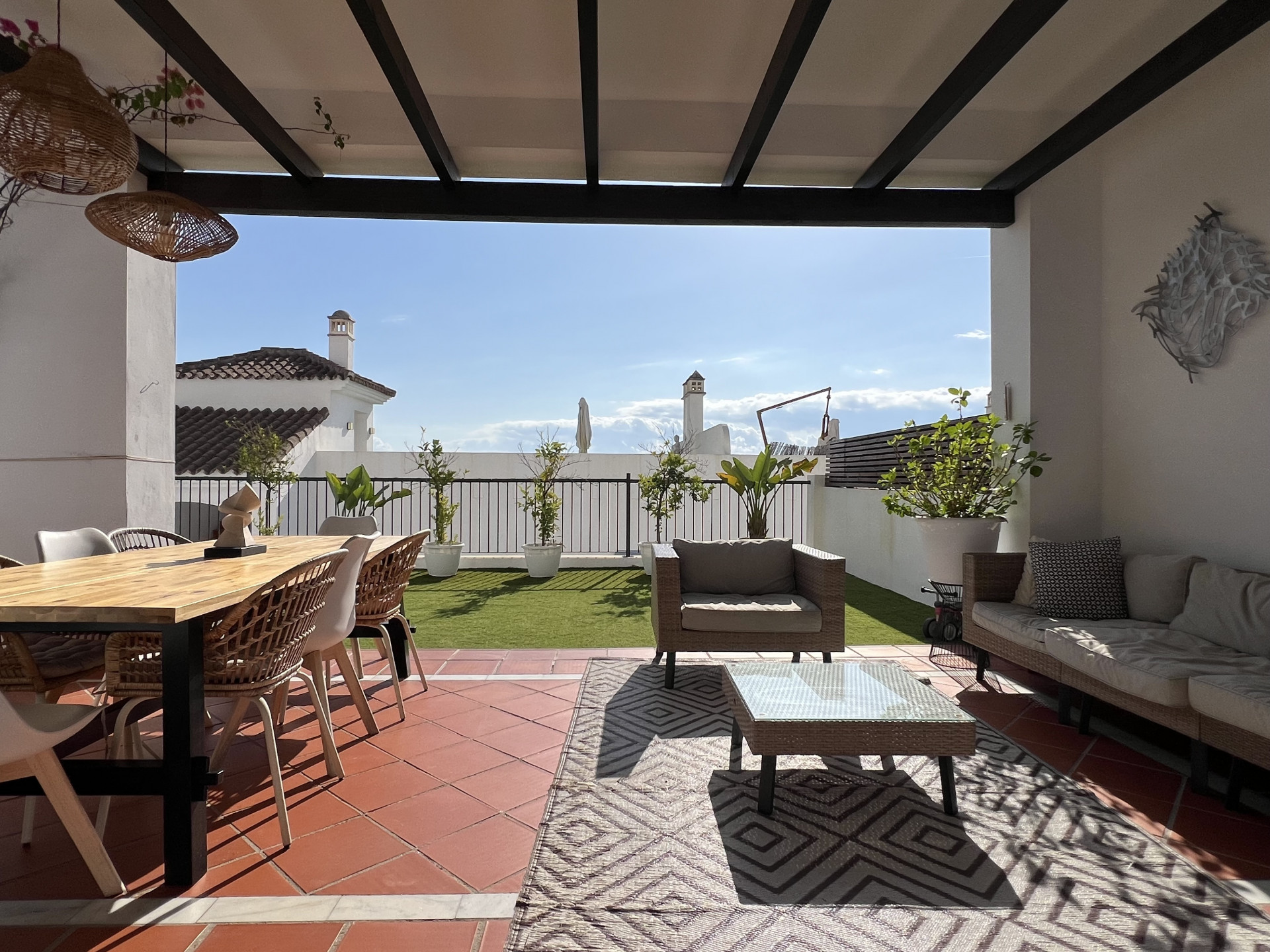 Espectacular apartamento con licencia turística de 3 dormitorios y 2 baños, ubicado en una planta baja elevada que combina privacidad, confort y un excepcional espacio exterior. Diseñado con un concepto de cocina y salón abiertos, el interior se distingue por su luminosidad, amplitud y un ambiente acogedor que, desde el primer instante, transmite la sensación de hogar. Uno de los mayores atractivos de esta propiedad es su amplia terraza privada, ideal para tomar el sol, disfrutar de comidas al aire libre o simplemente relajarse. Es el lugar perfecto tanto para familias como para parejas o aquellos que buscan un refugio espacioso dentro de un entorno estilo resort. Situado en uno de los desarrollos más exclusivos de la zona, los residentes disfrutan de acceso a una amplia gama de instalaciones de alta gama. Estas incluyen siete piscinas exteriores, una de ellas una hermosa piscina estilo laguna, junto con una piscina cubierta climatizada, un gimnasio completamente equipado, un centro de yoga y un lujoso spa. El complejo también cuenta con su propio restaurante, supermercado en el sitio y espacio de coworking, lo que lo hace ideal tanto para vivir de vacaciones como para la comodidad durante todo el año. Para los amantes del golf, hay un putting green, mientras que las familias apreciarán las piscinas infantiles y las áreas de juego. El complejo está rodeado de amplias zonas verdes y tranquilos senderos para caminar, ofreciendo una sensación de paz y tranquilidad en todo