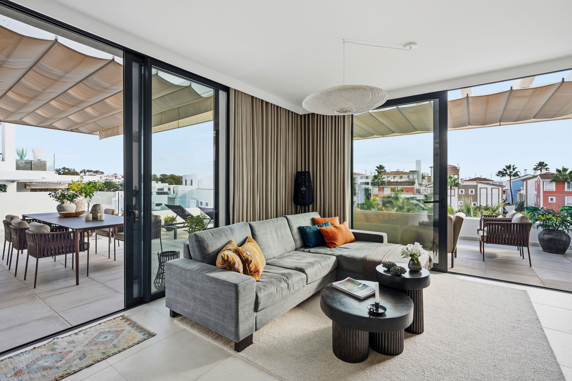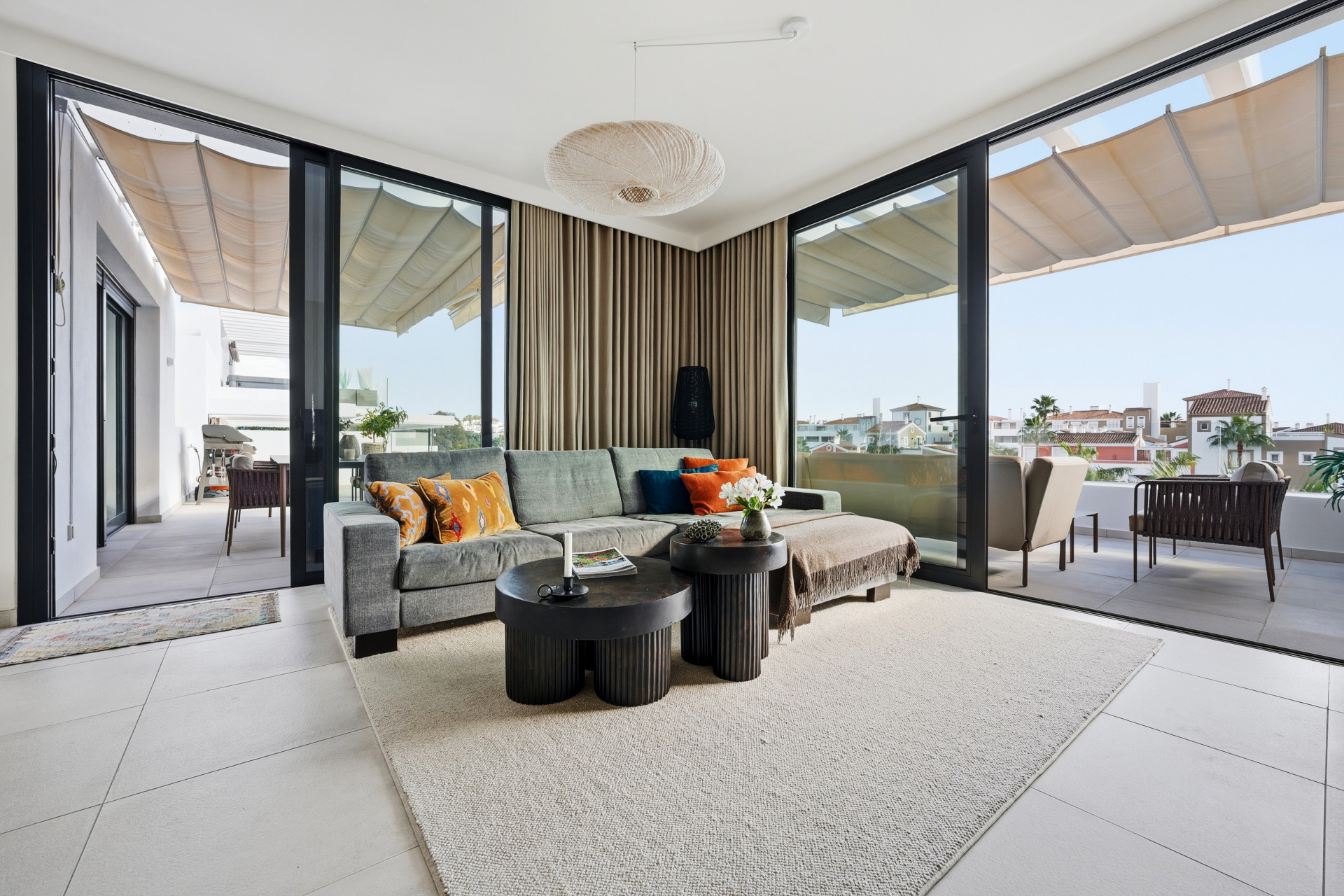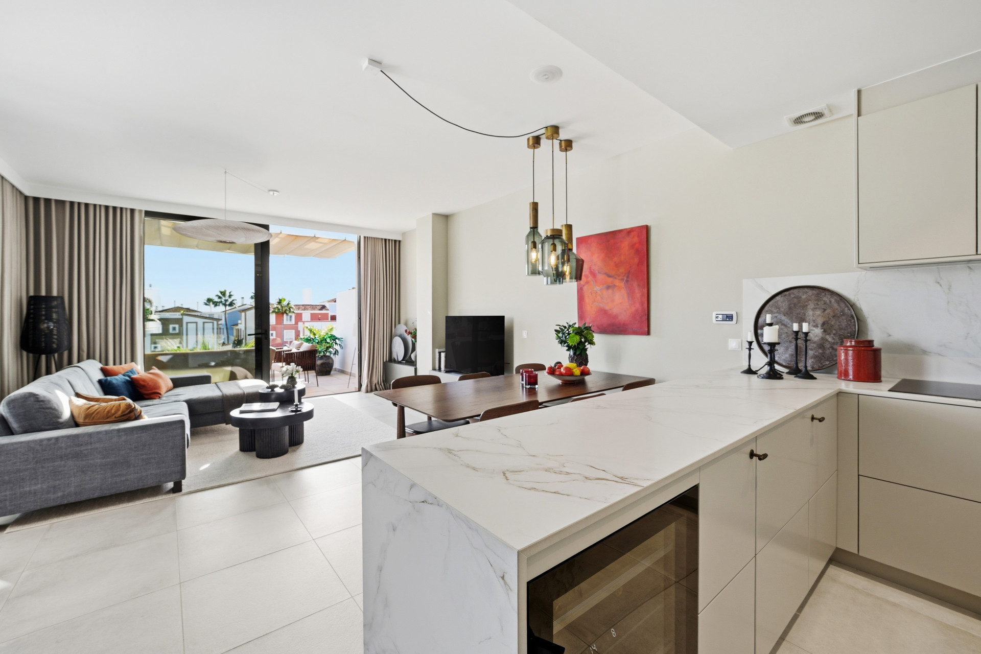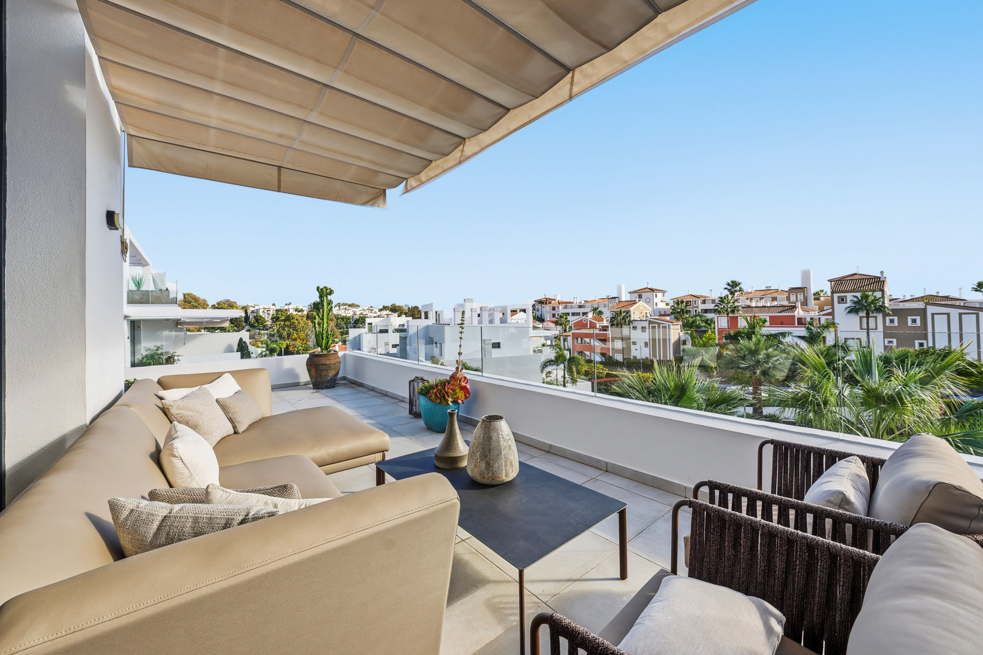 Este elegante ático dúplex se encuentra en Cortijo del Golf, una de las zonas residenciales más demandadas de Estepona. La propiedad destaca por su amplitud y luminosidad. Su ubicación privilegiada permite disfrutar de la cercanía a campos de golf, tiendas, restaurantes y colegios, lo que la convierte en una opción ideal tanto para residencia habitual como para segunda vivienda. La vivienda dispone de tres amplios dormitorios, dos baños completos, y aseo de invitados, todos diseñados con materiales de alta calidad y en excelente estado de conservación. El salón-comedor, espacioso y luminoso, se integra perfectamente con la cocina, de estilo abierto, completamente equipada, creando un ambiente moderno y funcional. Además, cuenta con armarios empotrados en los dormitorios, aire acondicionado y doble acristalamiento, garantizando confort en cualquier época del año.