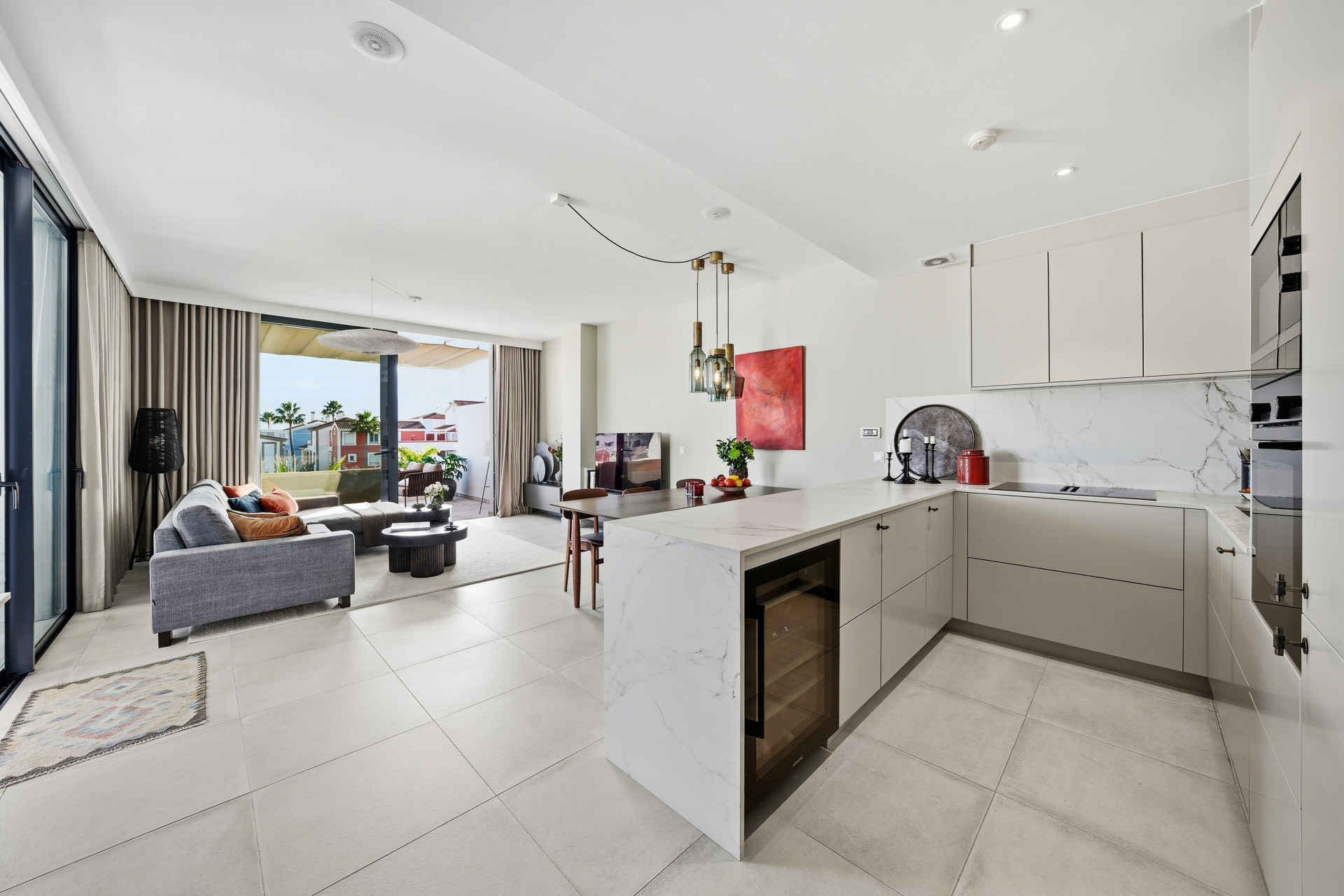 Entre sus características más destacadas se encuentran la gran terraza privada con vistas panorámicas perfecta para disfrutar del clima mediterráneo y organizar reuniones al aire libre. El complejo residencial ofrece zonas comunes ajardinadas, piscina comunitaria y acceso mediante portón de seguridad, proporcionando un entorno tranquilo y seguro. La propiedad incluye también un trastero, ascensor y garaje privado para dos coches, aportando un extra de comodidad y almacenamiento.