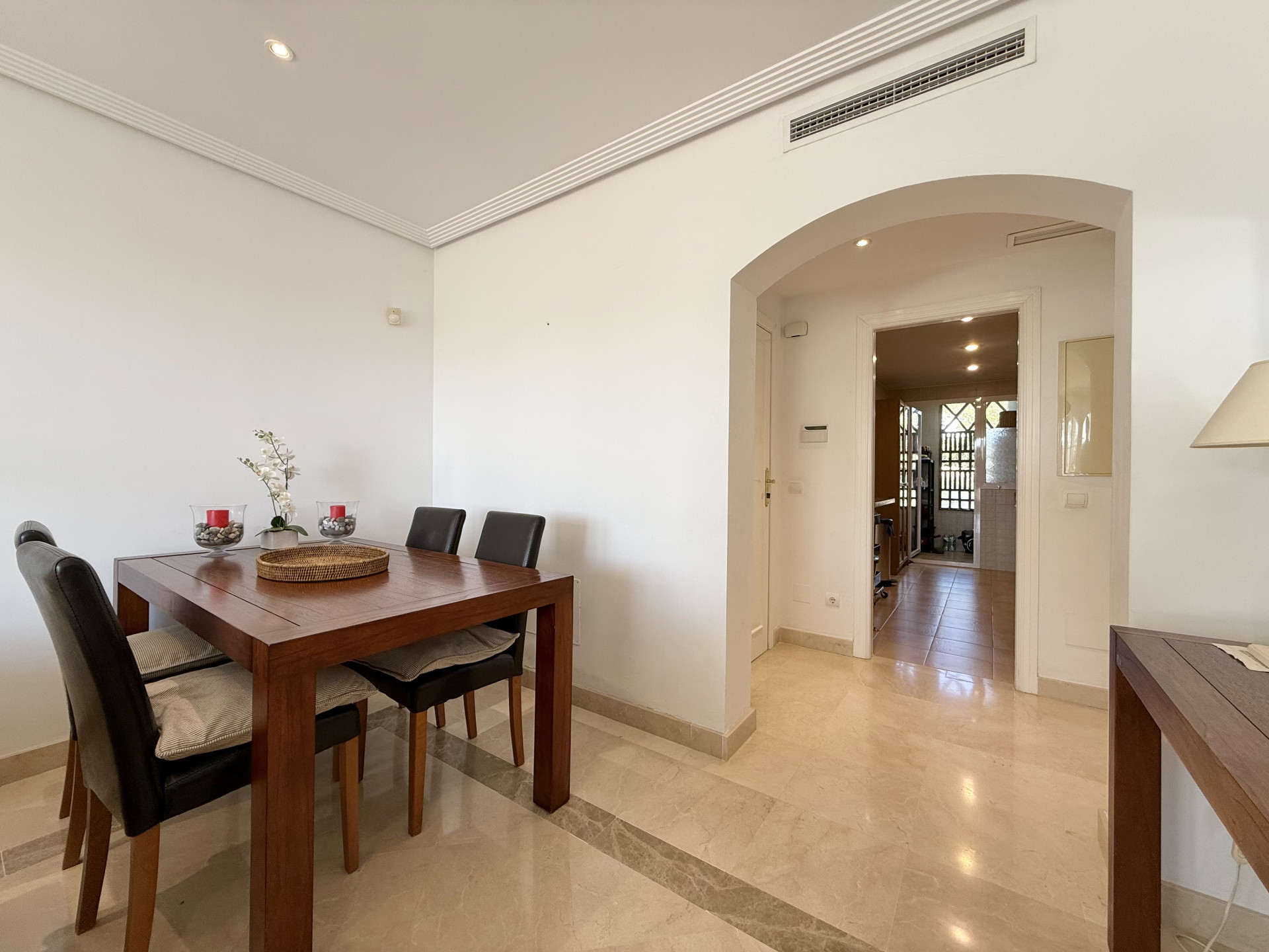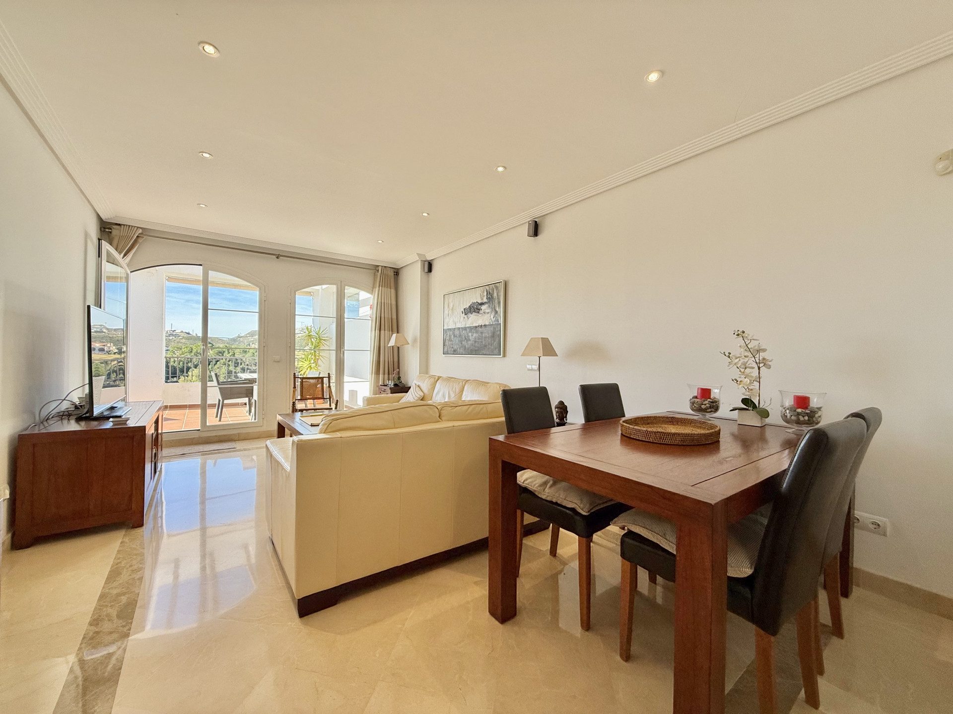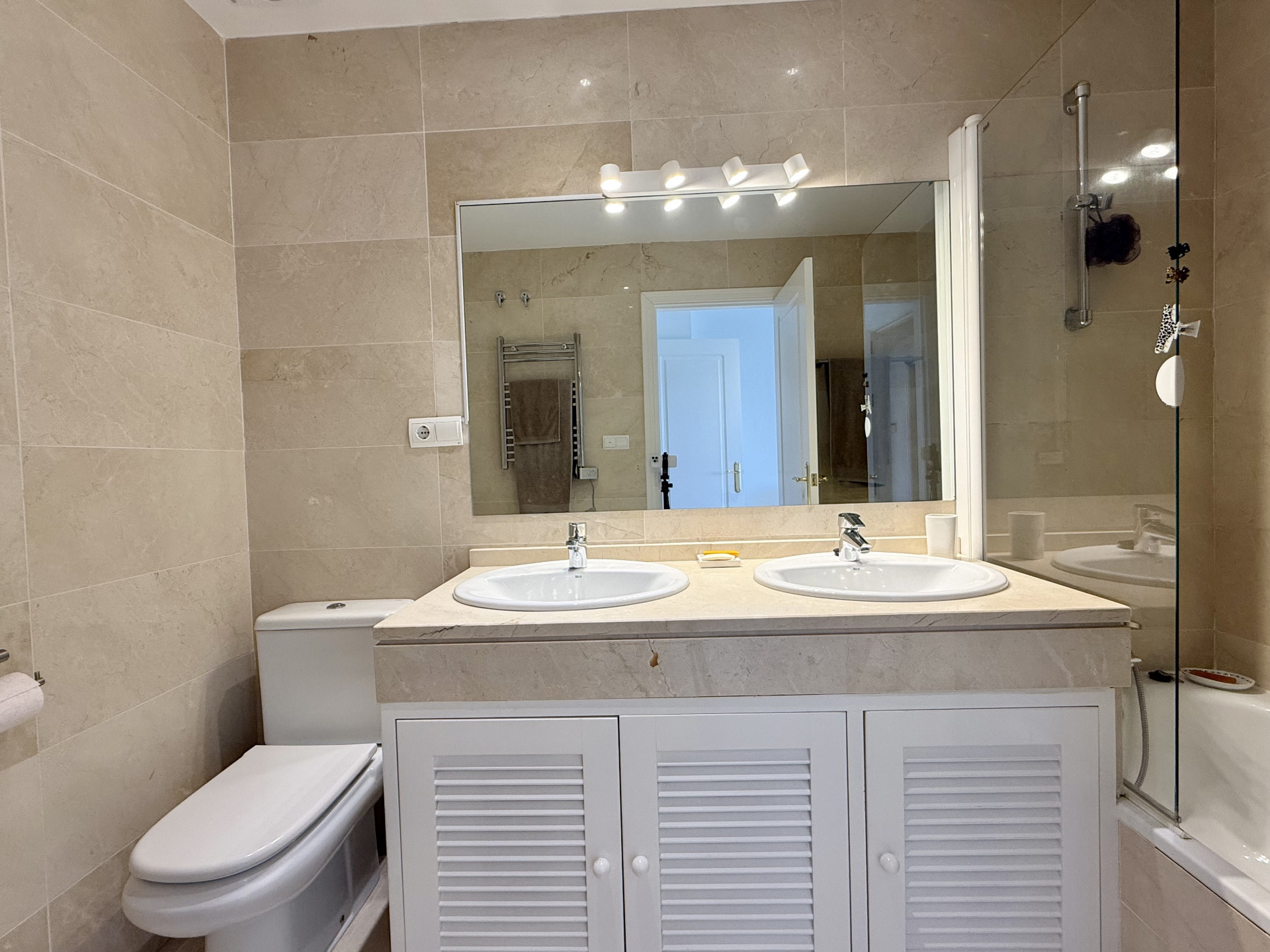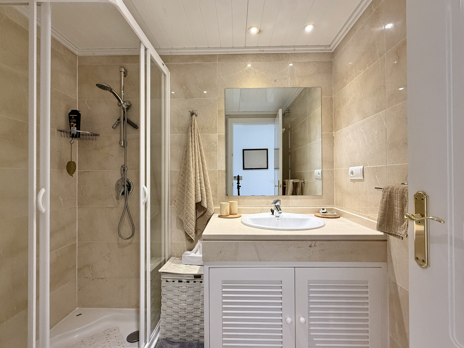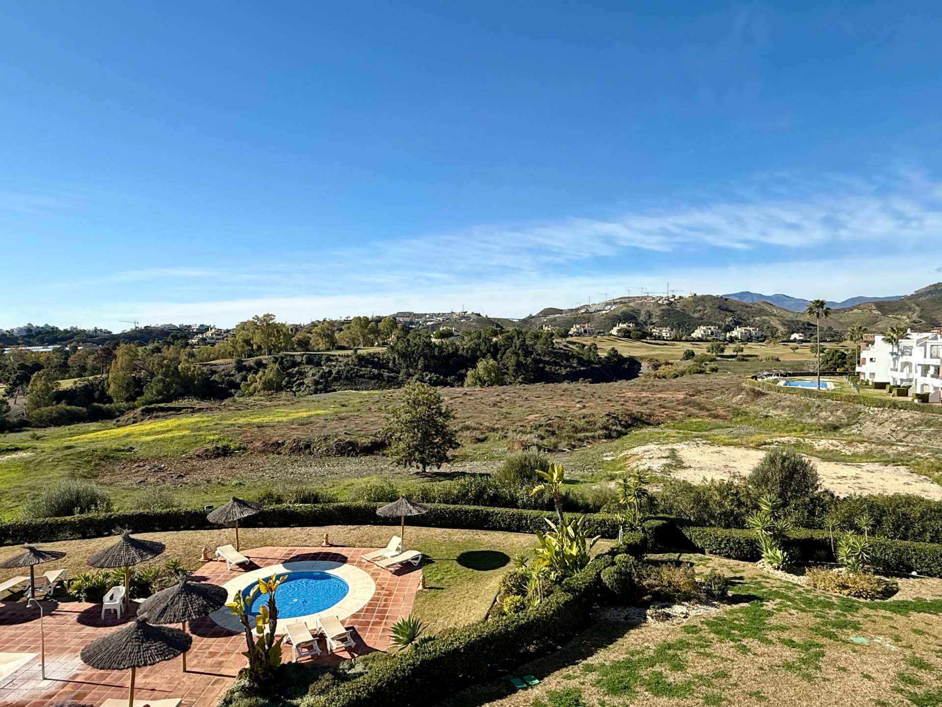 This exclusive penthouse is located in the prestigious area of Los Arqueros, Benahavís, Málaga, and stands out for its privileged position on the mountainside, surrounded by golf courses and just minutes from all amenities. The property offers panoramic views of the sea, mountains, countryside, and golf course. It features two spacious bedrooms and two bathrooms. The interior has been designed to provide maximum comfort, including air conditioning, a living-dining room, a fully equipped kitchen, and a laundry room. Built-in wardrobes, electric blinds, and double glazing provide functionality and security, complemented by an alarm system, secure entry, and 24-hour security service in the gated community. The penthouse offers an unparalleled living experience thanks to its private terrace, both covered and uncovered, ideal for enjoying views of the garden, pool, and natural surroundings. Additionally, the building has a lift, storage room, and private garage, ensuring maximum convenience. Residents can enjoy landscaped communal areas and the community pool, perfect for leisure and relaxation. The location is another of its great attractions, as it is close to golf courses, schools, restaurants, the port, and the city center. All this makes this penthouse a unique opportunity for those seeking an exclusive, secure, and well-connected property on the Costa del Sol.