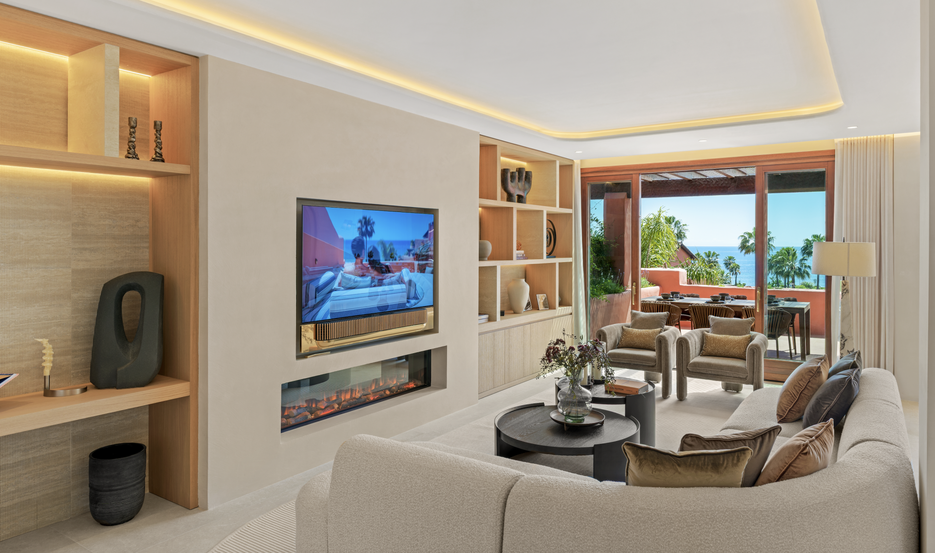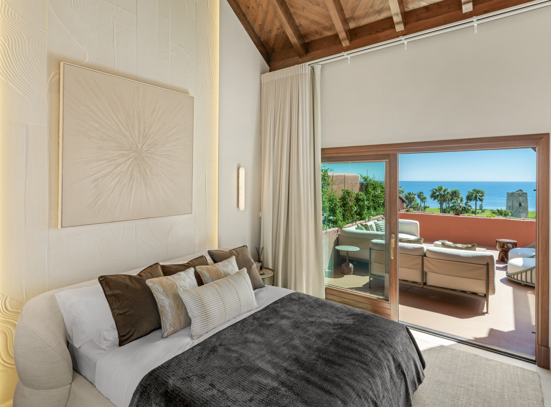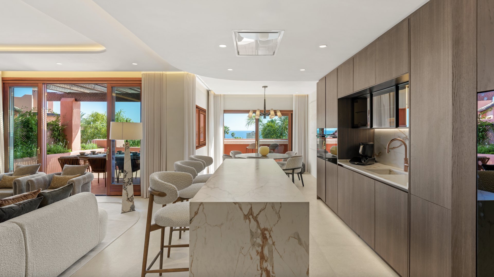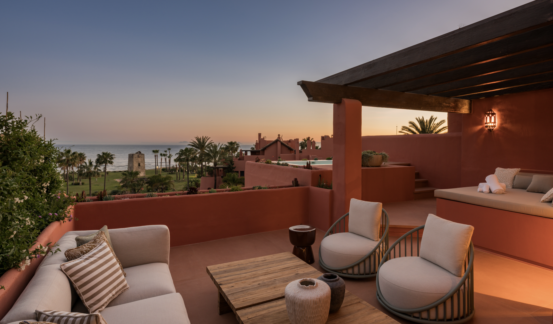 Situated along the exclusive New Golden Mile, this exceptional property offers a rare opportunity to live in a stunning Andalusian-style residence, combining traditional charm with modern elegance. Located in one of the most sought-after areas on the Costa del Sol, this home provides an unparalleled living experience, blending the beauty of history, the serenity of nature, and the convenience of modern amenities. This exceptional duplex penthouse offers 3 bedrooms and 4 bathrooms. Spanning over 200 m², with an additional 125 m² of terraces, the property boasts a sophisticated interior design featuring contemporary furnishings, custom-built wardrobes, and a sleek designer kitchen equipped with top-of-the-line appliances. Luxurious details such as a Bang & Olufsen sound system, an electric fireplace, and stylish Kettal outdoor furniture enhance the refined ambiance. A private sauna and jacuzzi on the stunning sun terrace invite you to unwind in complete comfort. Garage and storage included on the price.