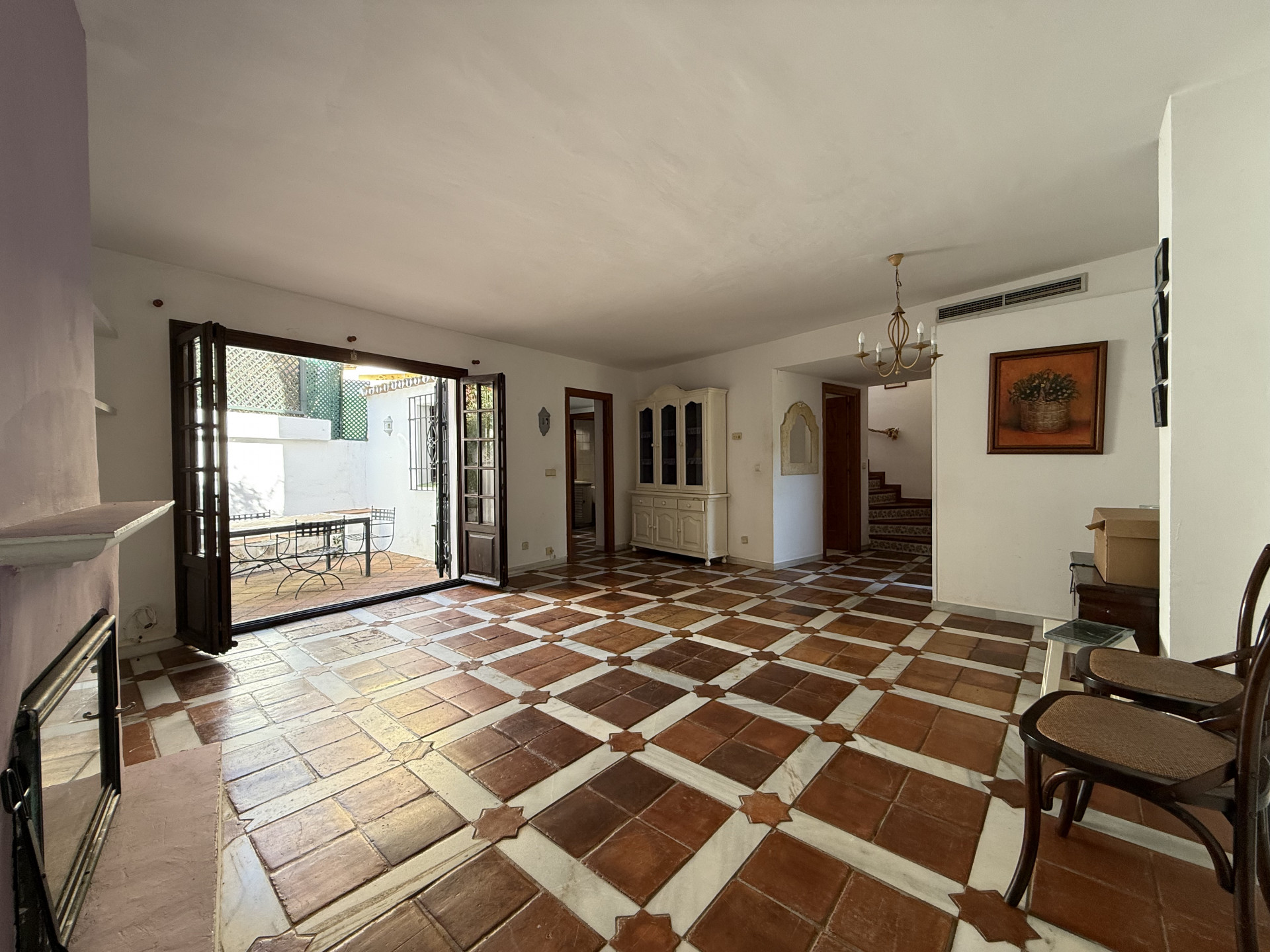 Located in the exclusive area of Guadalmina Baja, this Andalusian-style townhouse offers an excellent opportunity to live or invest in one of the most sought-after areas of the Costa del Sol. Its privileged location, just a few meters from the beach and surrounded by services, shops, schools, and restaurants, guarantees an unbeatable quality of life in a well-established, safe, and tranquil residential environment. The property boasts 100 m² of built area, distributed across three bedrooms, three full bathrooms, and a guest toilet. Inside, you will find a cozy living-dining room with a fireplace, an independent kitchen with a laundry area, and a charming patio perfect for enjoying the Mediterranean climate all year round. The house is delivered unfurnished and requires renovation, representing an excellent opportunity to personalize every corner to the new owner's taste. The property is part of a gated community, providing extra security and peace of mind. In summary, this is a townhouse with great potential, ideal both as a permanent residence and as a high-yield investment, in one of Marbella’s most desirable areas.
