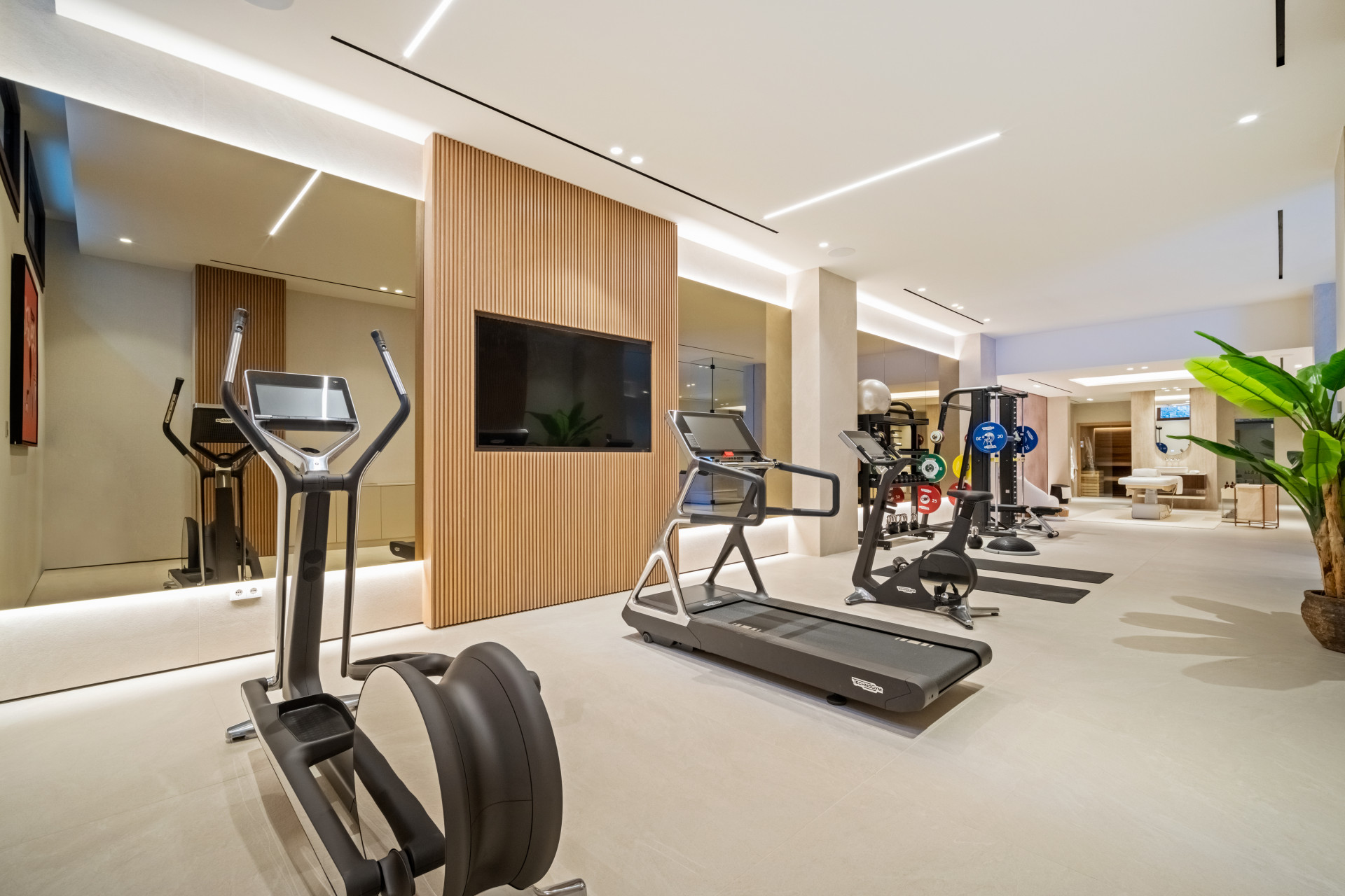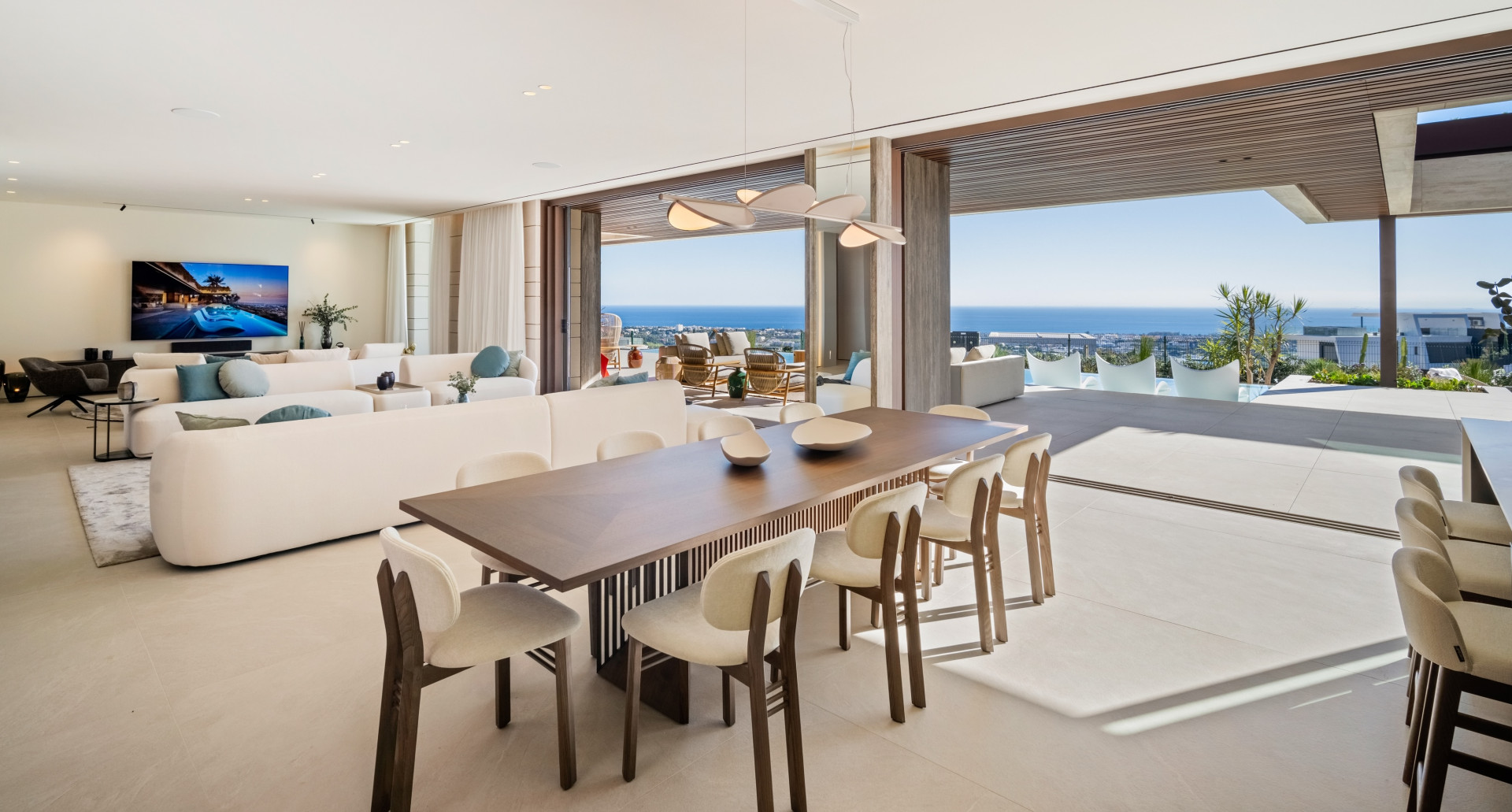 Options abound with five or six bedrooms, thoughtfully arranged across three levels, spanning approximately 850 m2 of impressive spaces. The main level reveals an open plan living area, seamlessly flowing onto expansive terraces and a pool, inviting one to relish the outdoor lifestyle that Marbella offers. Ascending to the upper level unveils a generous master suites and family quarters, while the basement houses a wealth of superbly designed amenities, harmoniously blending aesthetics with practicality, fostering an extraordinary living experience.