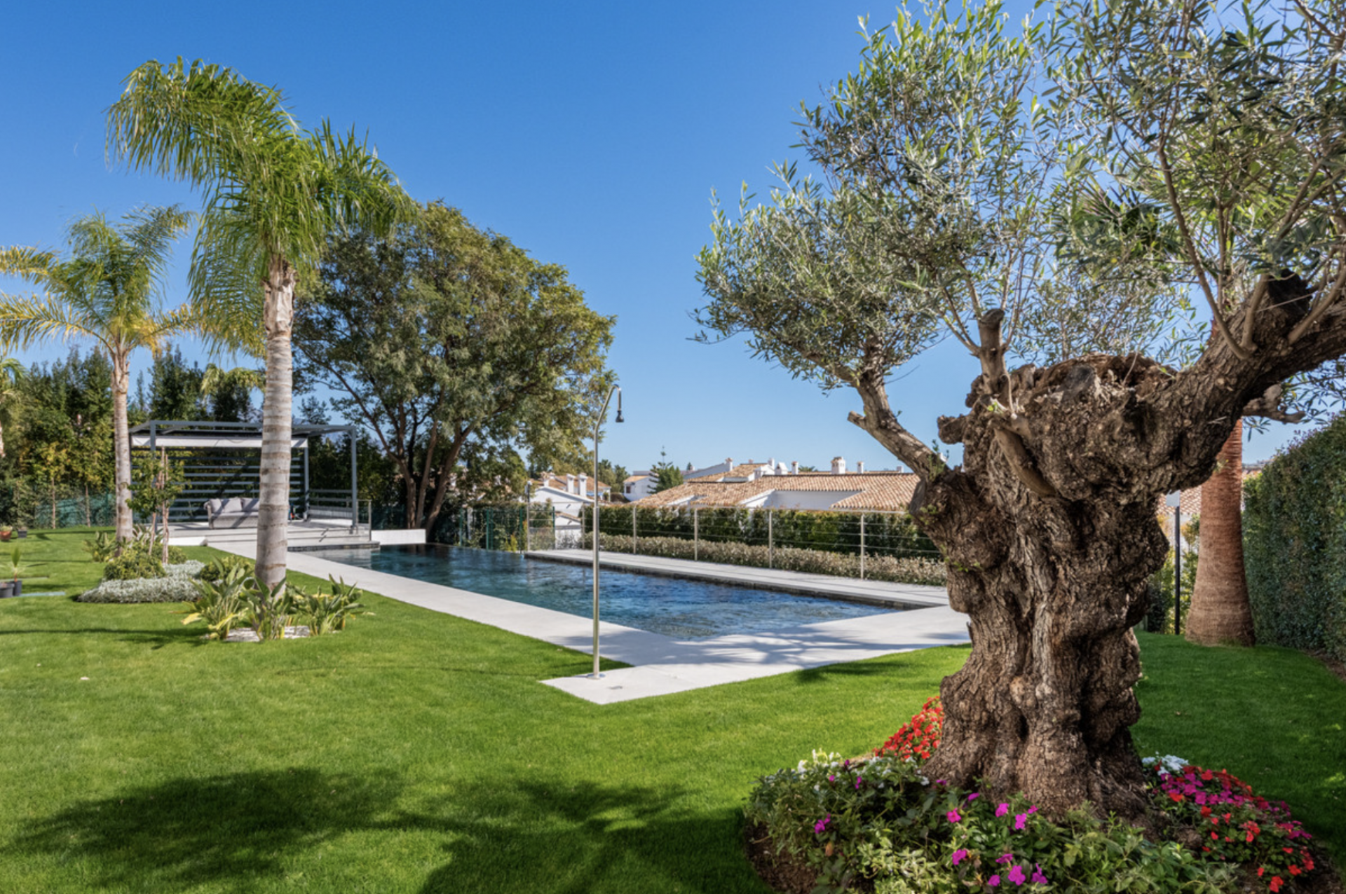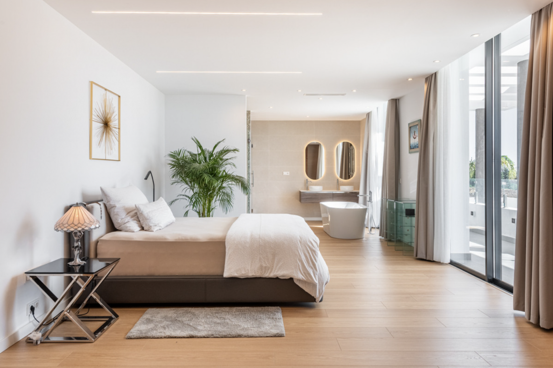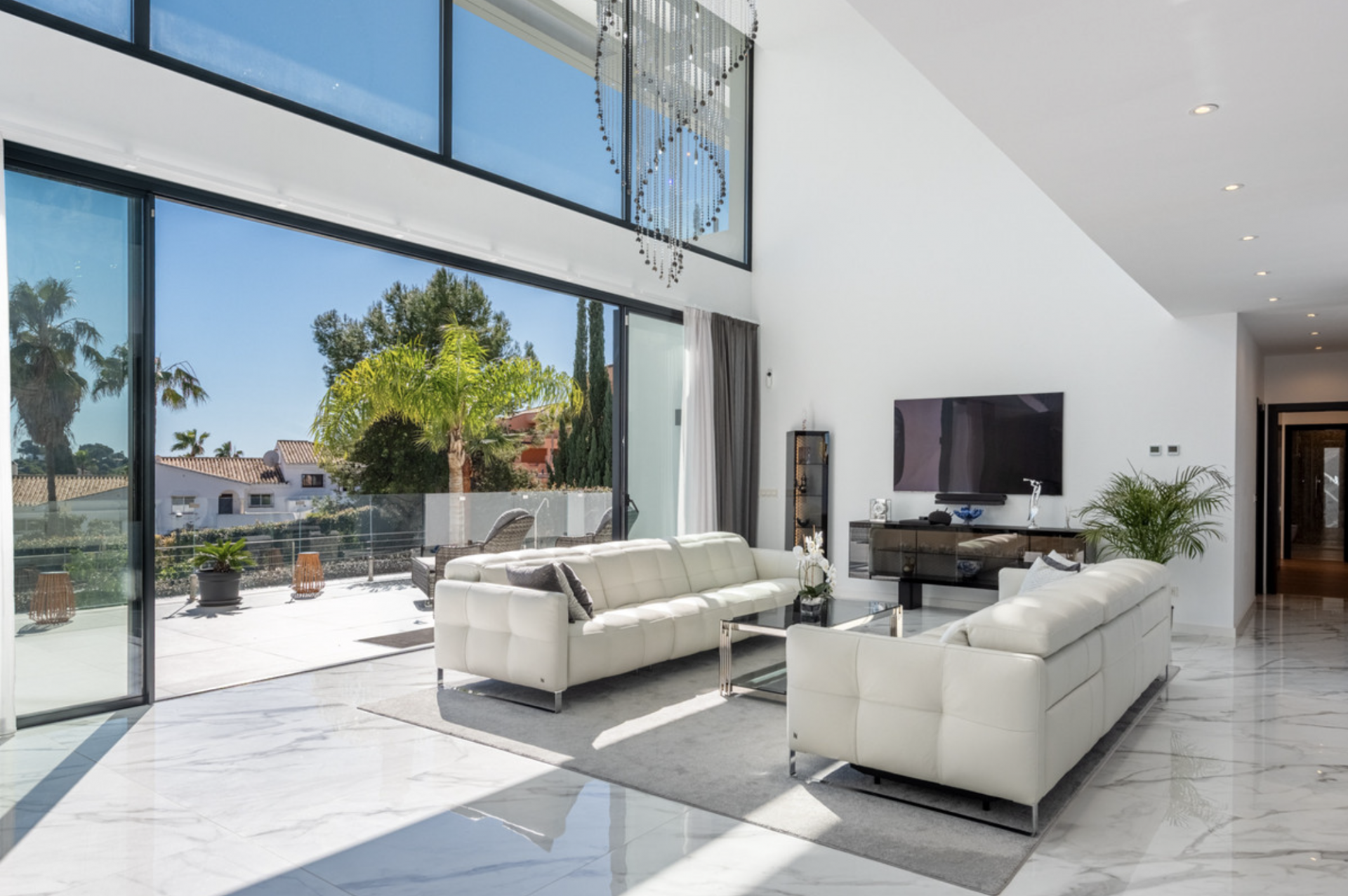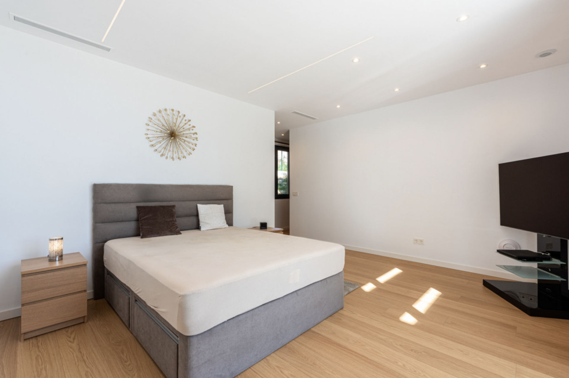 his family villa with great volume and a very practical layout is situated in Paraiso Alto, Benahavis at approximately 13 kms from Estepona and Marbella and at approximately 3,7 kms from the beach. El Paraíso Alto is a well established quiet area surrounded by golf courses. It is just a short drive from the vibrant nightlife and social life of Puerto Banús, private schools and supermarkets. The house is arranged over three levels, and you can move between them by stairs or lift, which makes day-to-day life very easy. The main level comprises an entrance hall and the heart of the home: generous living and dining spaces that connect naturally to the kitchen. The kitchen is supported by a pantry and additional storage, so it works well both for family life and for entertaining. Also on this level there are two en-suite bedrooms, each with its own dressing room and bathroom. It’s ideal for guests, teenagers, or anyone who prefers to avoid stairs. There’s also a guest toilet. Upstairs, the home turns into a private sleeping level. You have two large principal bedroom suites, both with dressing rooms and en-suite bathrooms, plus two studies and an additional room that can work as a sitting room, playroom, or extra office space. This floor also opens onto covered pergola terraces, giving you outdoor space with shade and privacy.
