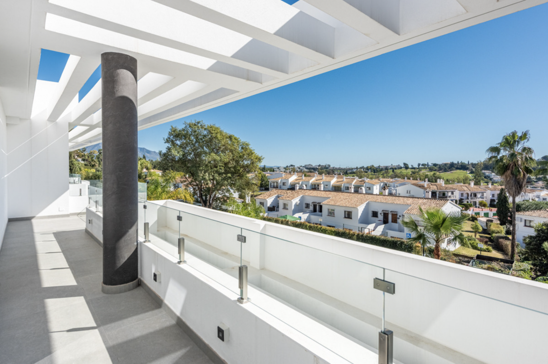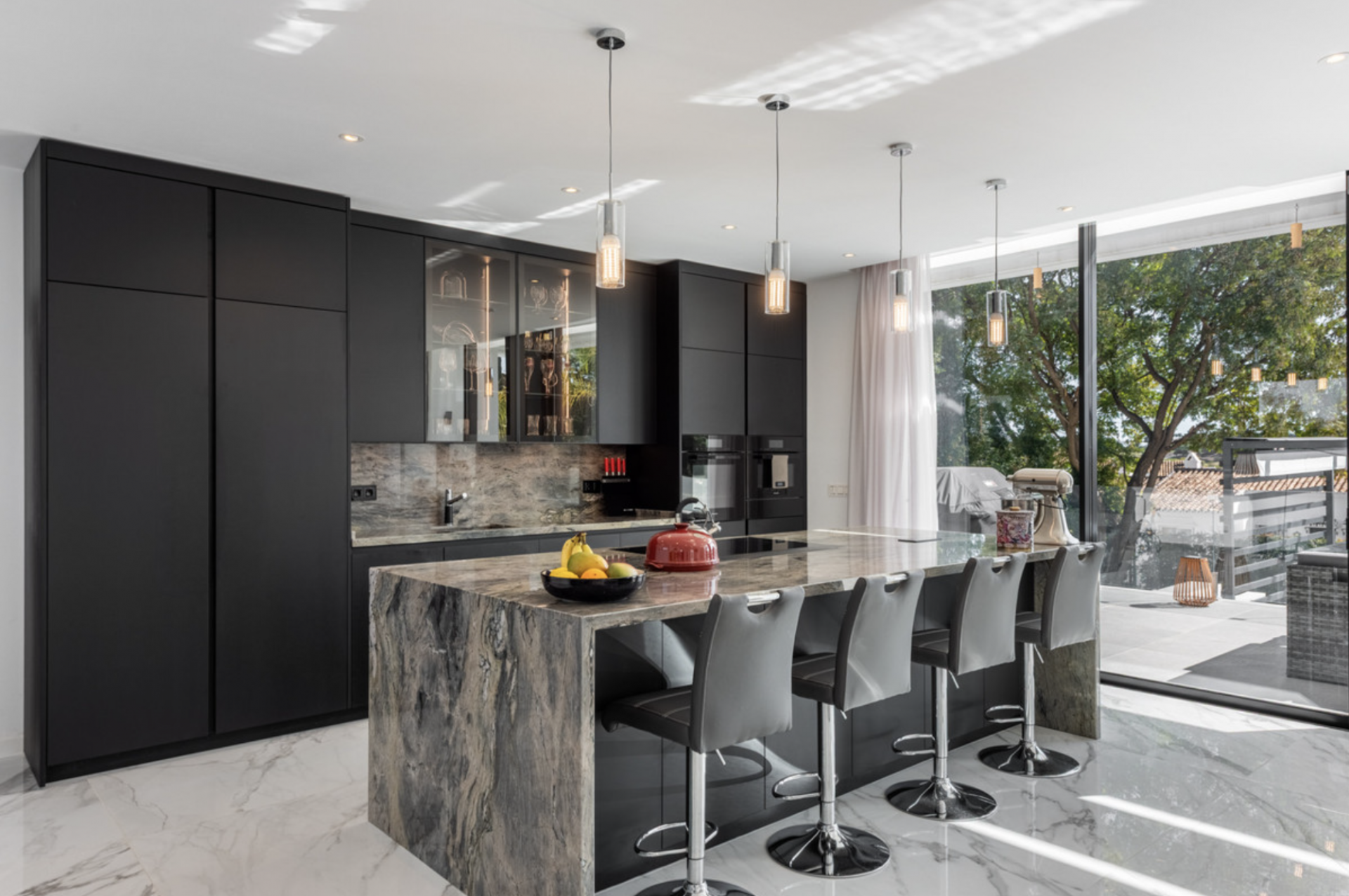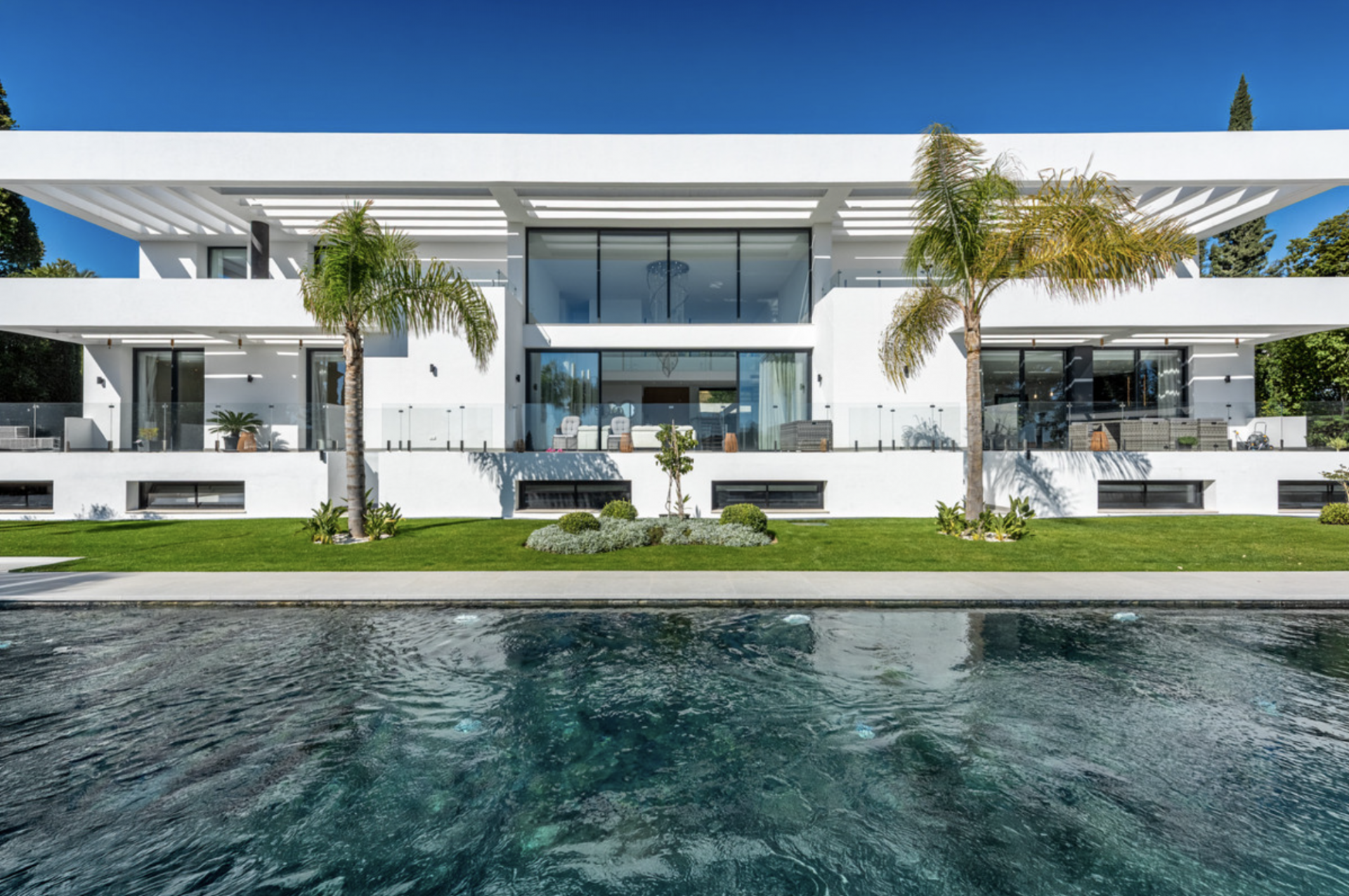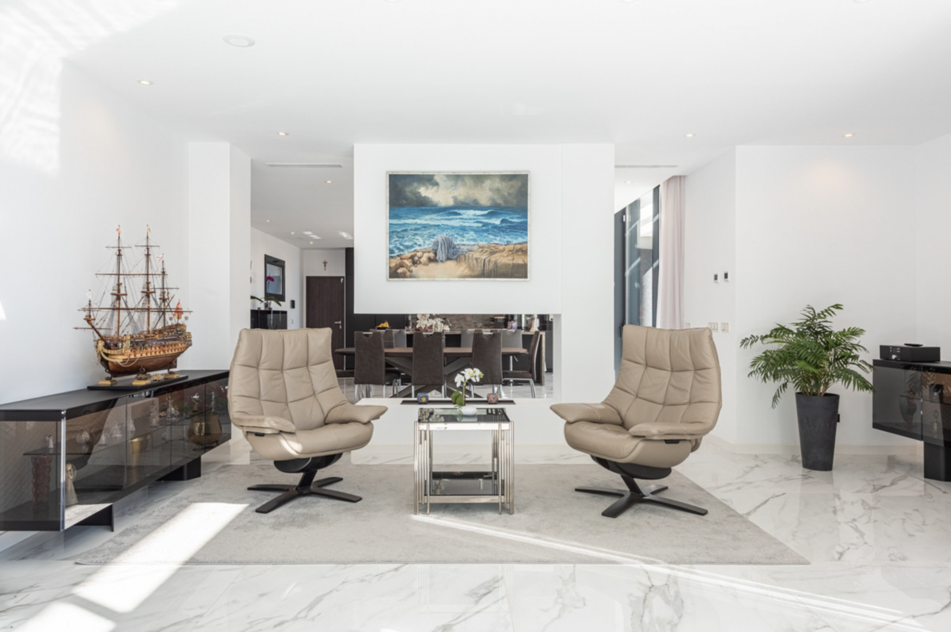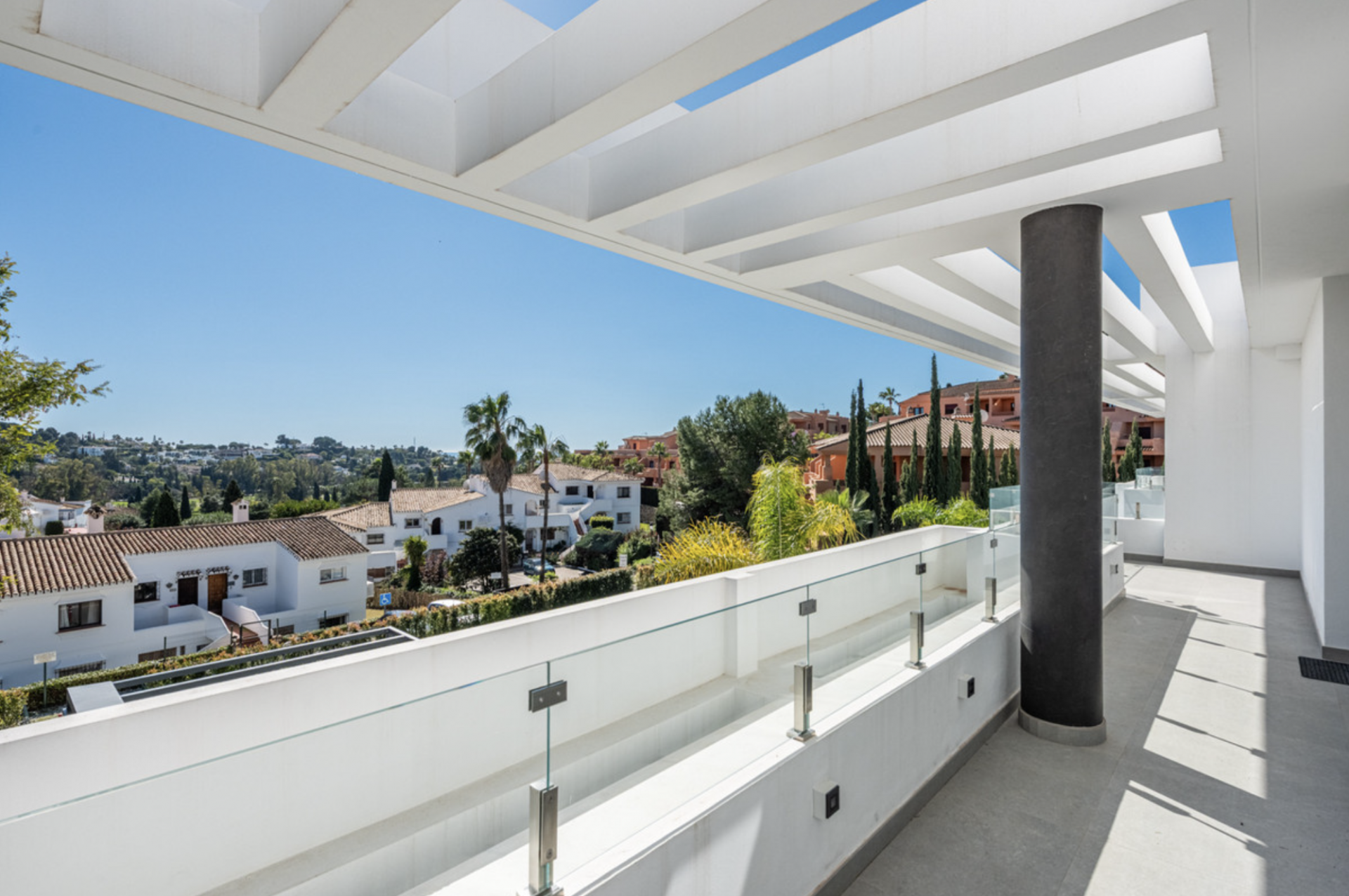 his family villa with great volume and a very practical layout is situated in Paraiso Alto, Benahavis at approximately 13 kms from Estepona and Marbella and at approximately 3,7 kms from the beach. El Paraíso Alto is a well established quiet area surrounded by golf courses. It is just a short drive from the vibrant nightlife and social life of Puerto Banús, private schools and supermarkets. The house is arranged over three levels, and you can move between them by stairs or lift, which makes day-to-day life very easy. The main level comprises an entrance hall and the heart of the home: generous living and dining spaces that connect naturally to the kitchen. The kitchen is supported by a pantry and additional storage, so it works well both for family life and for entertaining. Also on this level there are two en-suite bedrooms, each with its own dressing room and bathroom. It’s ideal for guests, teenagers, or anyone who prefers to avoid stairs. There’s also a guest toilet. Upstairs, the home turns into a private sleeping level. You have two large principal bedroom suites, both with dressing rooms and en-suite bathrooms, plus two studies and an additional room that can work as a sitting room, playroom, or extra office space. This floor also opens onto covered pergola terraces, giving you outdoor space with shade and privacy.